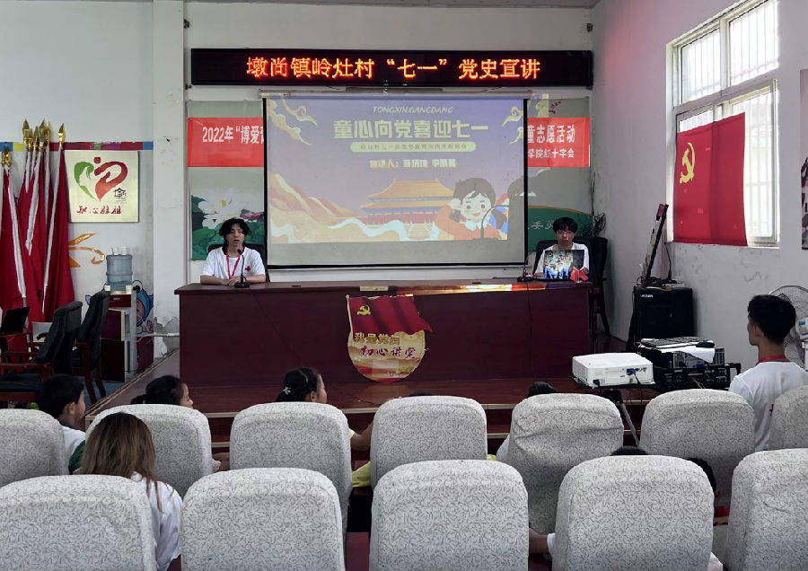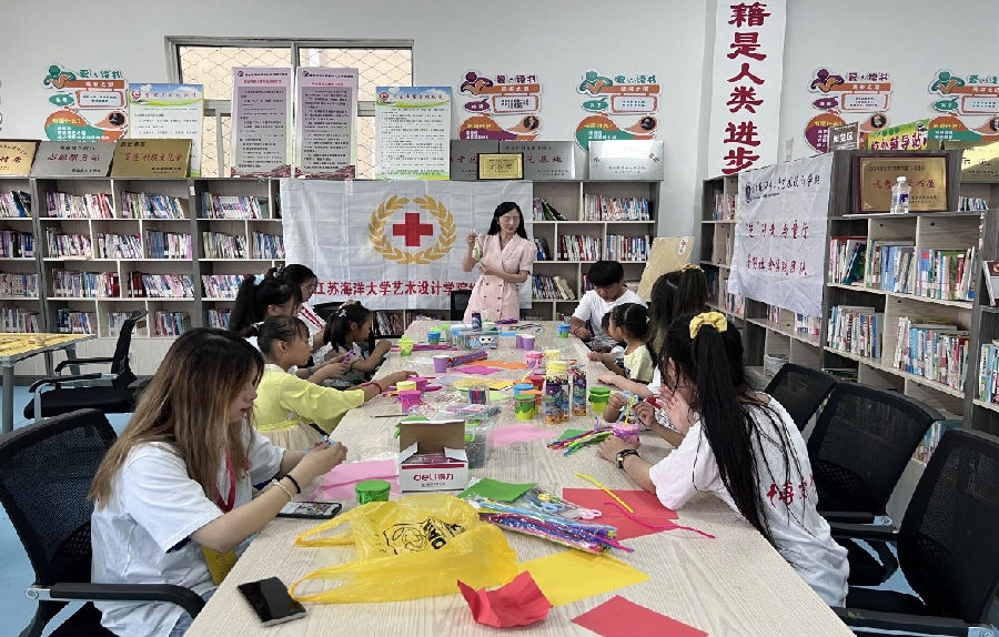 6月28日,江苏海洋大学艺术设计学院红十字会青年志愿者团队继续在赣榆区岭灶村开展志愿者工作。