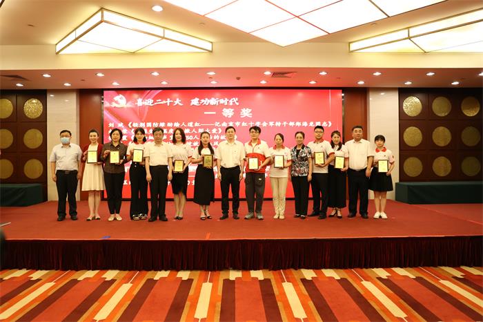 宣讲结束,江苏省红十字会领导为主题宣传活动一等奖获得者颁发奖牌和证书。