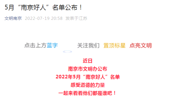7月20日,由栖霞区红十字会推荐的南京中医药大学余琅当选5月“南京好人”。