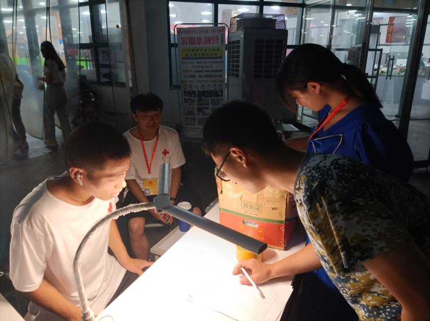 6月24日,江苏海洋大学电子工程学院红十字会的志愿者们在四食堂广场开展募捐活动。