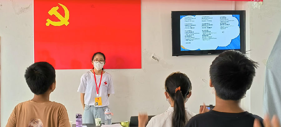 7月6日,江苏海洋大学红十字会“青‘海’昭阳”博爱青春暑期社会实践服务团队同样是在上午7点30分准时来到了赣榆区青口镇大沟南村委会,志愿者们照往常一样,将教室打扫干净,准备好教案,整理好着装,在教室外等待着孩子们的到来。时间来到7点57分,孩子们都进到了教室,第一节课也就在早上8点正式开始了。第一节课是关于手势舞的课程,志愿者紧接着上次课的内容继续教授孩子们《一起向未来的》的手势舞课程,志愿者改进了教授方法,不同于以往的一次性教授,采用分段教授《一起向未来》手势舞,孩子们对手势舞的学习也因教学方法的改变更为轻松,志愿者带着孩子们多次训练,反复加强,在学习的过程中,大家都专注且认真,课堂愉快活跃,孩子们都在努力的学习着《一起向未来》的手势舞,学习手势舞丰富自己的同时传达情感。