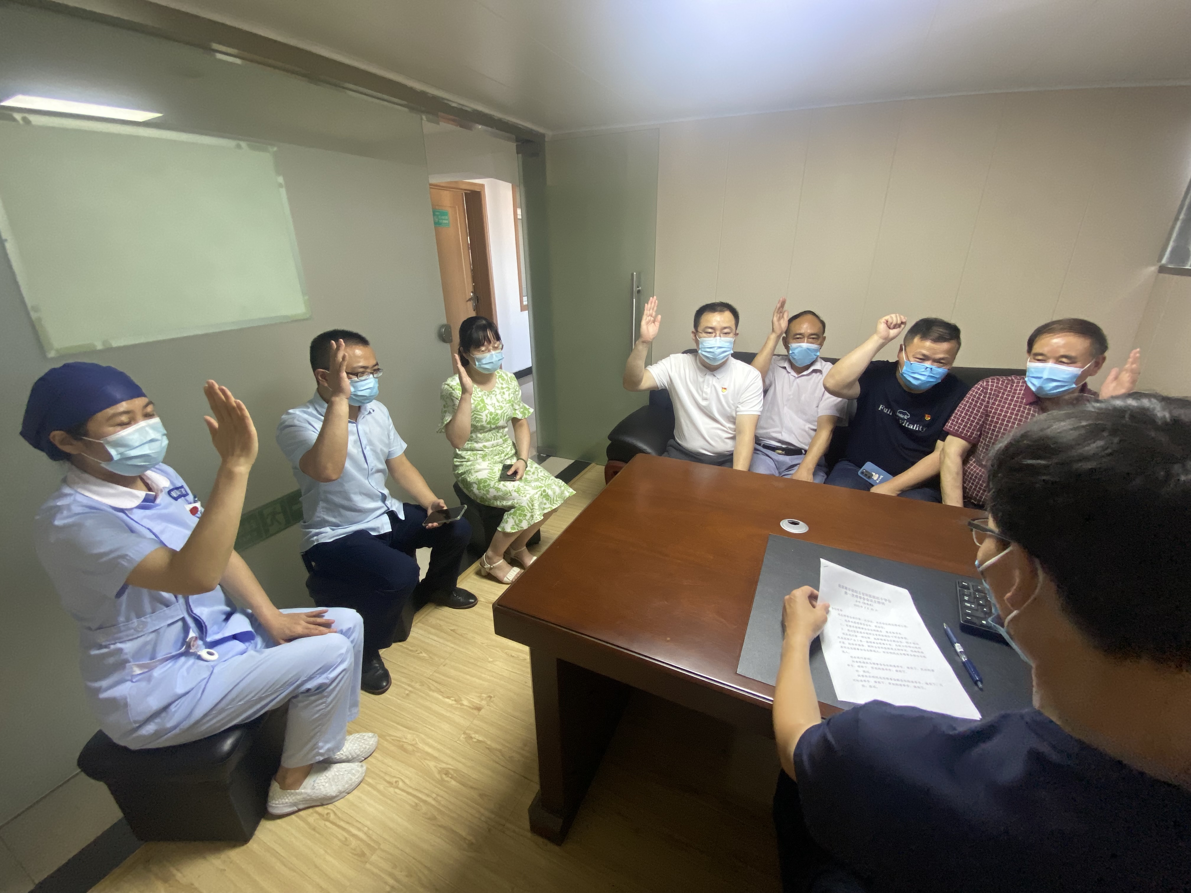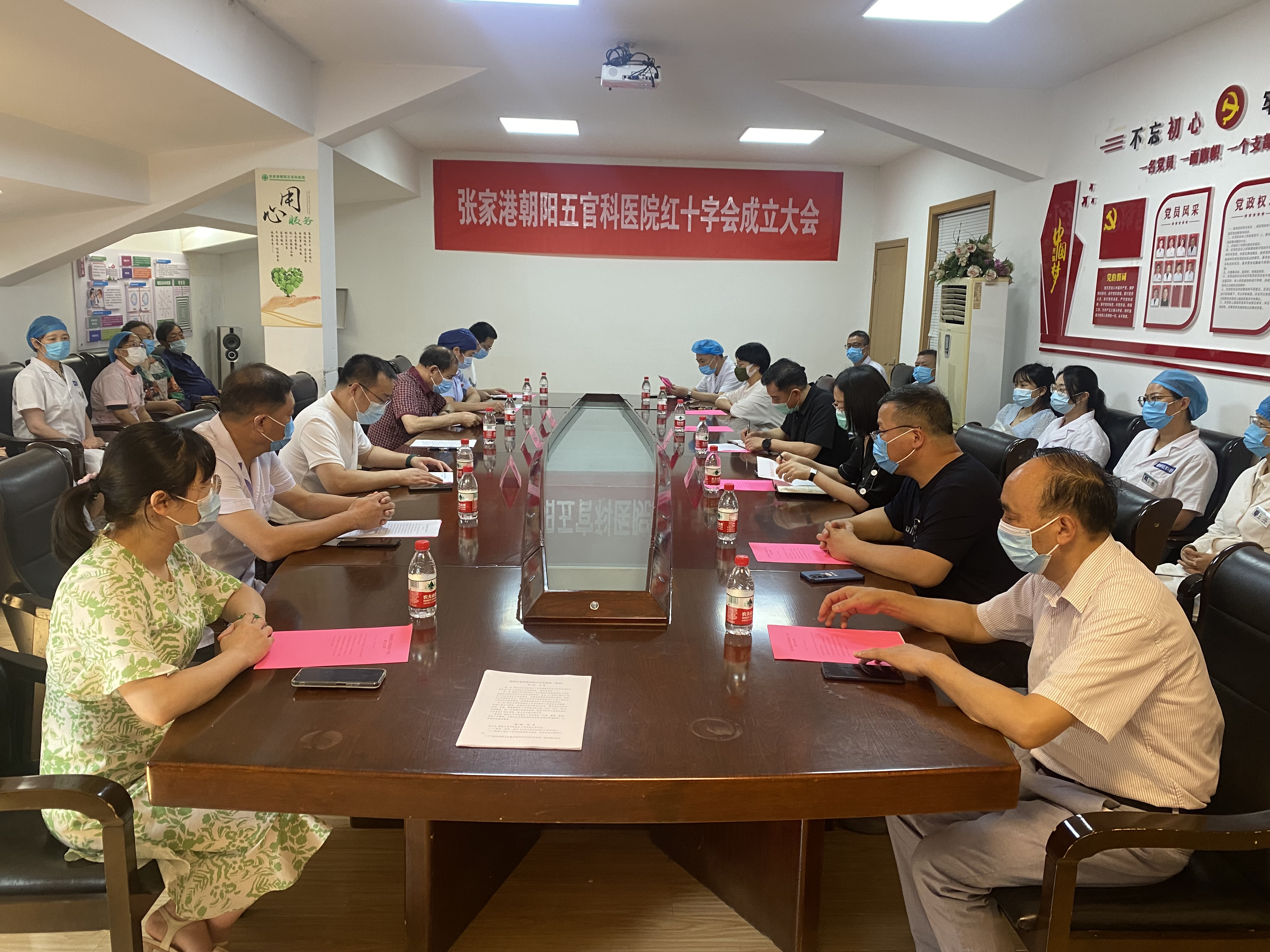7月20日上午,张家港市朝阳五官科医院召开红十字会成立大会暨第一次会员代表大会,市红十字会常务副会长丁浩、秘书长黄莺,朝阳五官科医院总经理陈瑞其、院长许兴明、党支部书记丁月峰等出席会议。