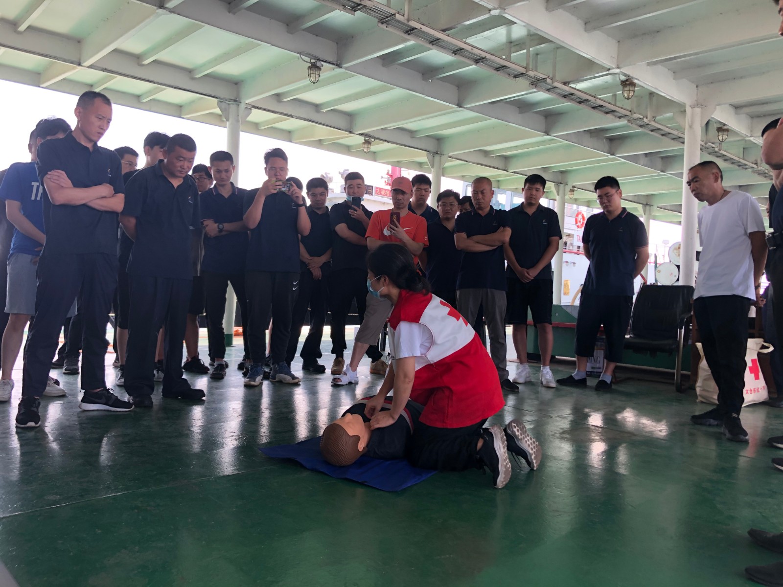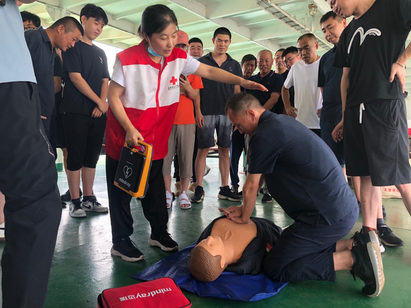 据悉,长海船务有限公司主要业务范围是协助港口海轮靠离泊和护航、船厂新造海轮的下水出坞等大型水面工程作业、长江沿线的拖带,以及水上应急突发事件的搜救抢险和水上消防作业,是太仓水域一支重要的搜救力量,其中11名船员还纳入了红十字应急救援队。通过此次培训学习,现场人员较为准确地掌握了心肺复苏的急救要领,在今后遇到突发险情时,能够运用学到本领,第一时间为伤者进行救助,努力争取“黄金四分钟”的抢救时机,更好地为群众的生产、生活保驾护航。