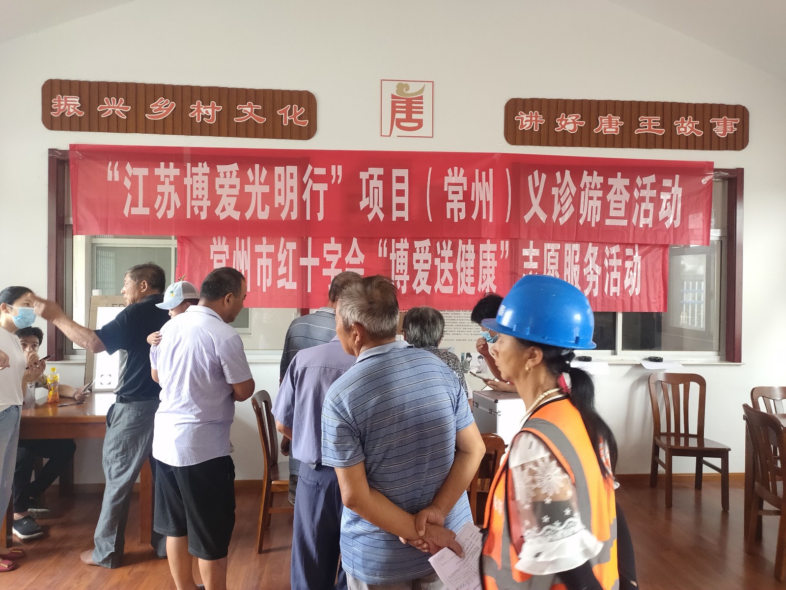 活动现场,常州红十字仁慈医院、常州普瑞眼科医院的7名医护人员,为该村群众开展了博爱送健康、博爱光明行义诊义疗活动。市红十字会、金坛区红十字会、唐王村委相关负责人,还就“99公益日”乡村助医扶困项目实施细节进行了探讨。
