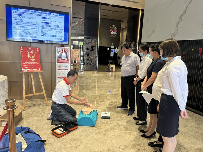 自动体外除颤器(AED),被誉为“救命神器”,该设备是一款全自动、易学易用,可供非专业人员经过简单培训即可操作的急救设备,用于患者心跳骤停后的早期除颤,可帮助患者恢复心脏跳动,适合非医护人员在紧急状态下使用。“体外除颤仪”虽然听上去很专业,使用操作非常简单,对多数人来说,只需几小时的培训便能操作。目前,在AED布点前后,区红十字会均有计划地对工作人员进行急救知识和技能的培训,确保掌握AED的使用和徒手心肺复苏技能。