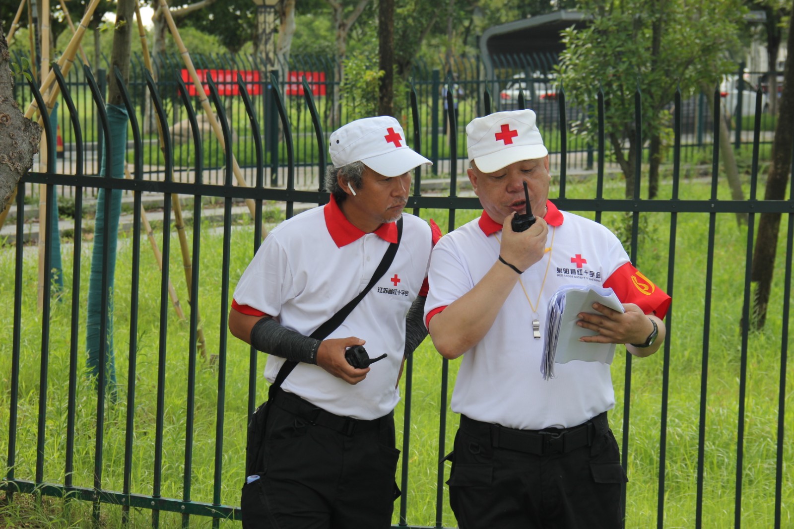 “市红十字会应急指挥部,我是射阳红十字会应急救援队队长吴刚,我们已完成赈济救援准备工作,现已开展赈济救援行动,报告完毕!”在赈济救援环节,射阳县红十字救援队、阜宁县红十字救援队、建湖县红十字救援队在半小时内高效完成了赈济救援指挥处、信息采集上报点、受灾群众临时安置点、志愿者招募培训点、物资仓库、物资接收发放点共6个点的赈济救援场所建设,并在第一时间安排队员、志愿者前往受灾群众的家中发放食品和饮用水。高效完成了赈济救援任务,达到了良好的演练效果。