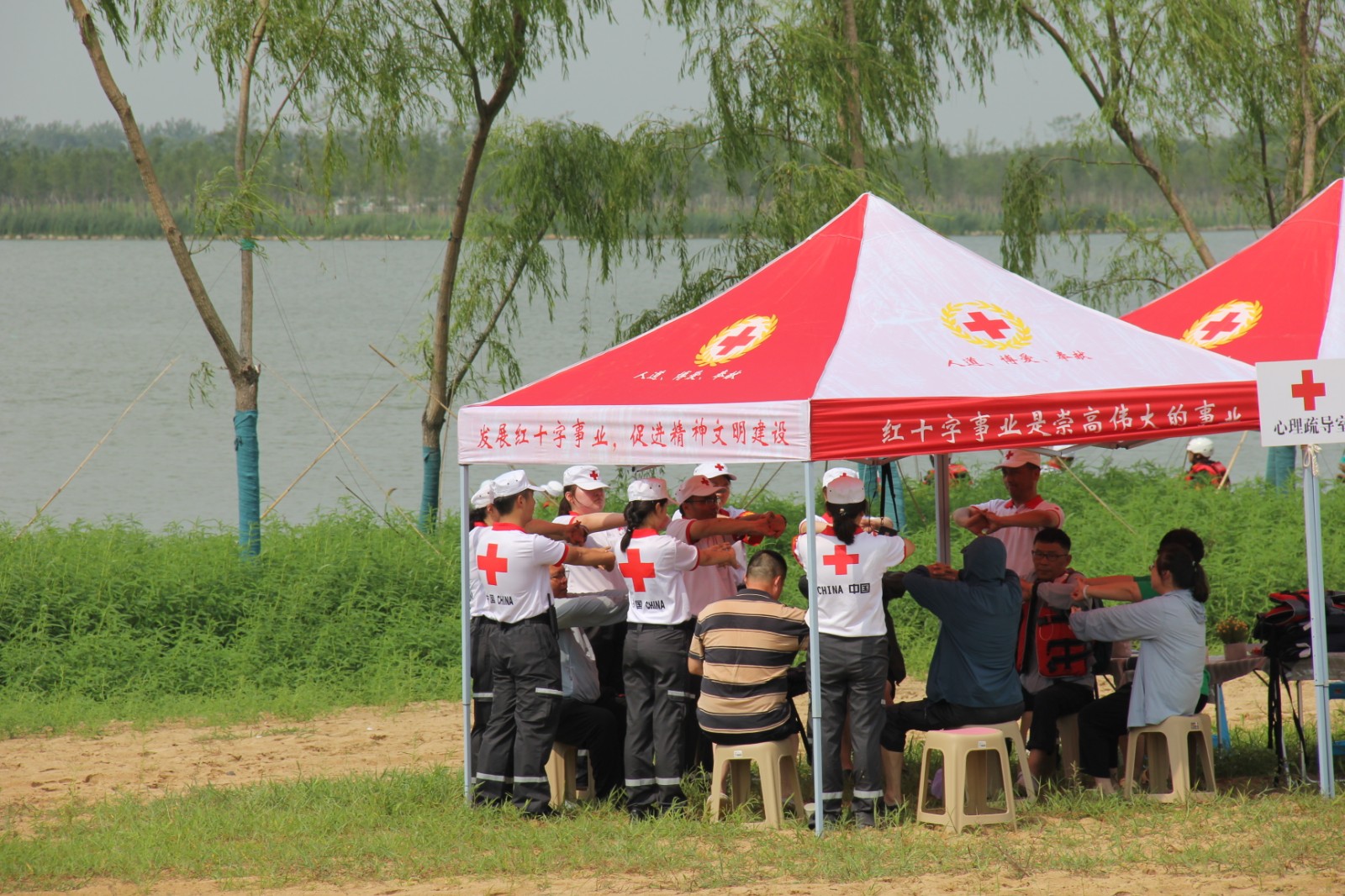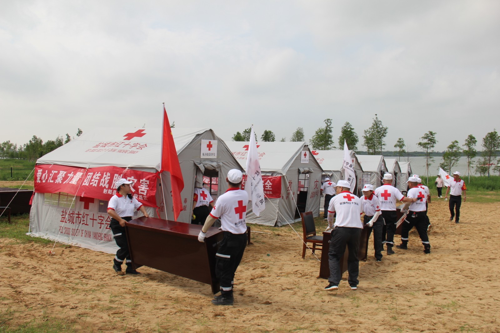 为研究探索市红十字会系统应急救援队遂行任务时的联合协同和情况处置方法,锻炼提高市、县红十字会应急救援队应对突发事件的能力,2022年7月29日上午,盐城市、各县(市区)红十字会在阜宁县金沙湖开展了代号为“盐红救援—2022”的盐城市红十字应急救援联合演练。响水、滨海、射阳、阜宁等10支红十字应急救援队参加了演练。
