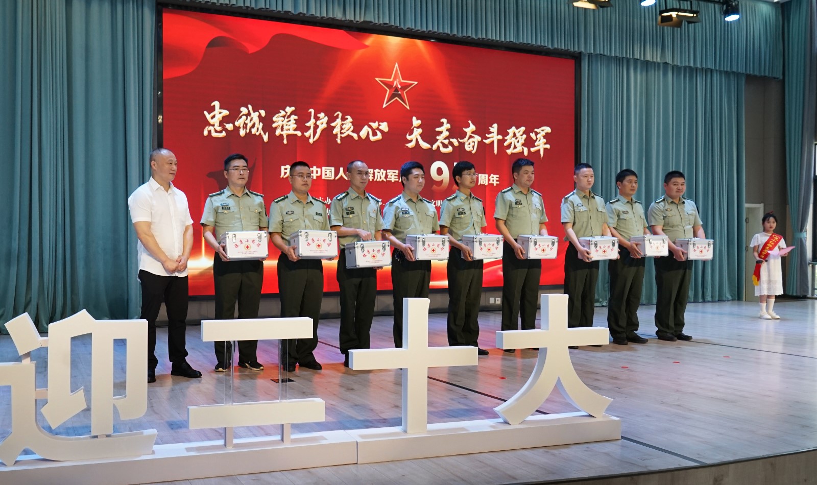 区人武部上校政治委员朱建清为抗战老兵和退伍兵代表赠送“八一”慰问品,并为小红妈宣讲员们颁发了“爱我国防”优秀宣讲员聘书。金沙医院有限公司董事长程时林和红十字养老照护队为专武干部代表和民兵连长赠送红十字健康小药箱。大家还进行了国防知识有奖问答,并开展了趣味军事小游戏——叠手榴弹比赛,选手在桌上放置教练手榴弹,竖直放置依次叠加,以趣味十足的军事游戏比赛增强了军民的国防意识。