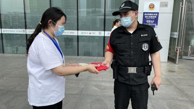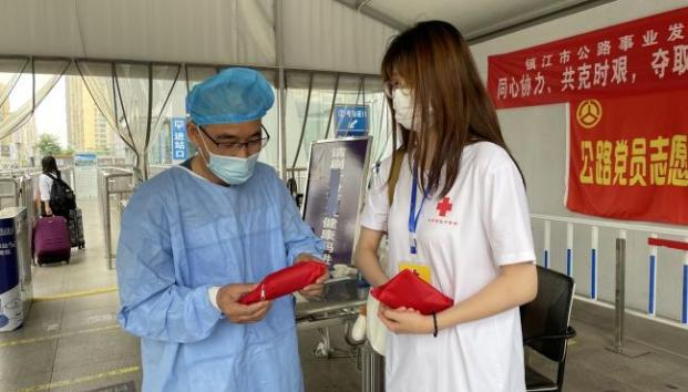 在镇江火车站,志愿者进行疫情防控科普宣讲、发放“博爱青春”文创产品,对疫情防控知识要点做重要讲解,并耐心认真地回答市民们的每一个问题。