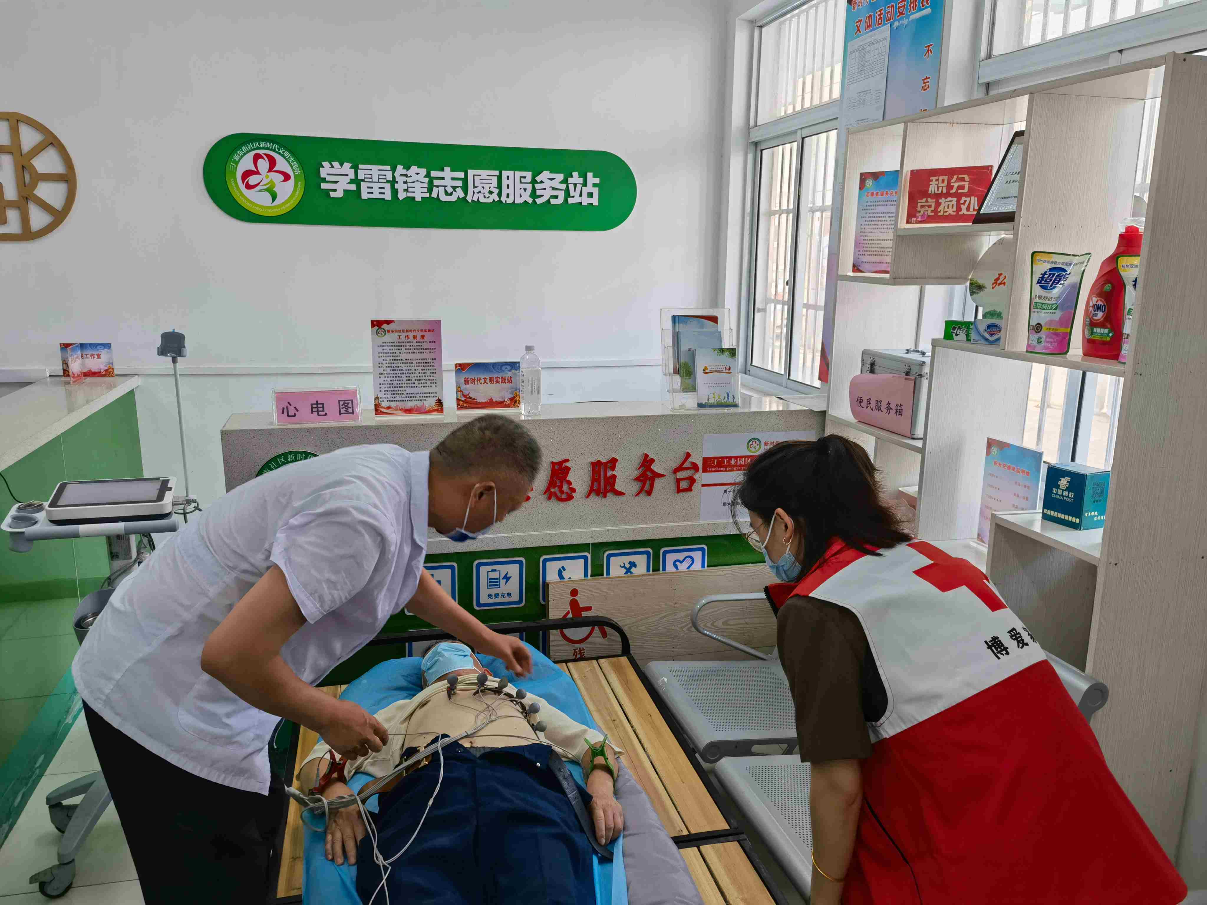 活动现场,社区居民在红十字志愿者的引导下有序就诊,医护人员为社区老年人提供免费血压、血糖测量、B超检查、心电图检查、健康咨询等义诊服务,通过询问病史、面诊、中医把脉等方式,为大家诊疗和答惑解疑,还针对百姓在日常生活中容易遇到的突发状况进行应急救护知识普及,同时志愿者们向居民们发放红十字宣传折页,宣传博爱家园项目、红十字运动和“三救三献”知识,让老人们在家门口就能享受到便利的医疗服务,获得了大家的一致赞誉和好评。