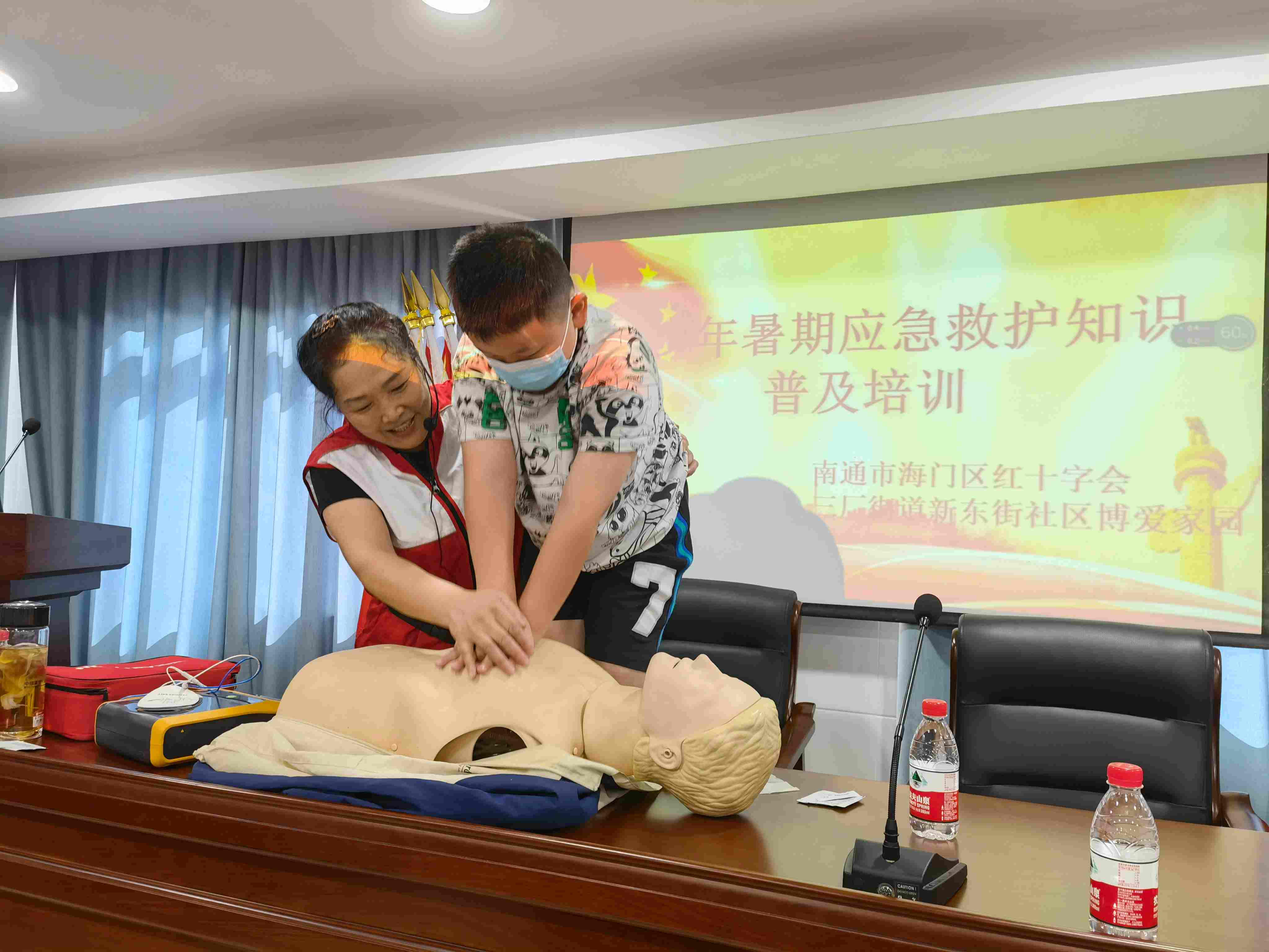 为增强青少年紧急避险和自救互救的意识和能力,区红十字会来到三厂街道新东街社区,为社区的青少年们开展了一期暑期应急救护知识普及培训。