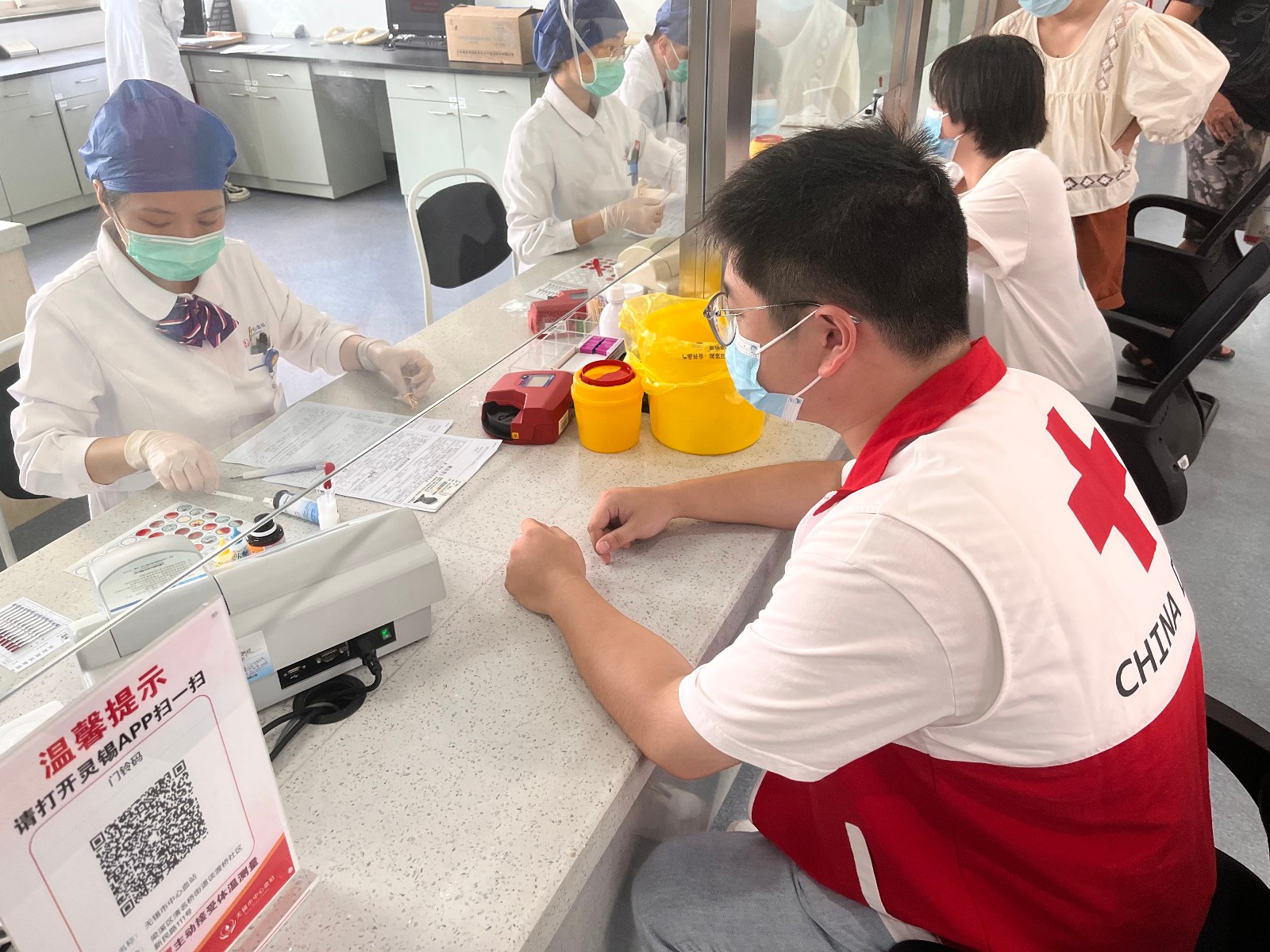 活动现场,前来参加献血的志愿者们在医护人员和红十字工作人员的协助下,登记填表、采血化验、等候、抽血、休息,红十字工作人员向大家发放造血干细胞捐献宣传折页,为大家普及造血干细胞采集相关知识、答疑解惑,现场秩序有条不紊,气氛温馨。