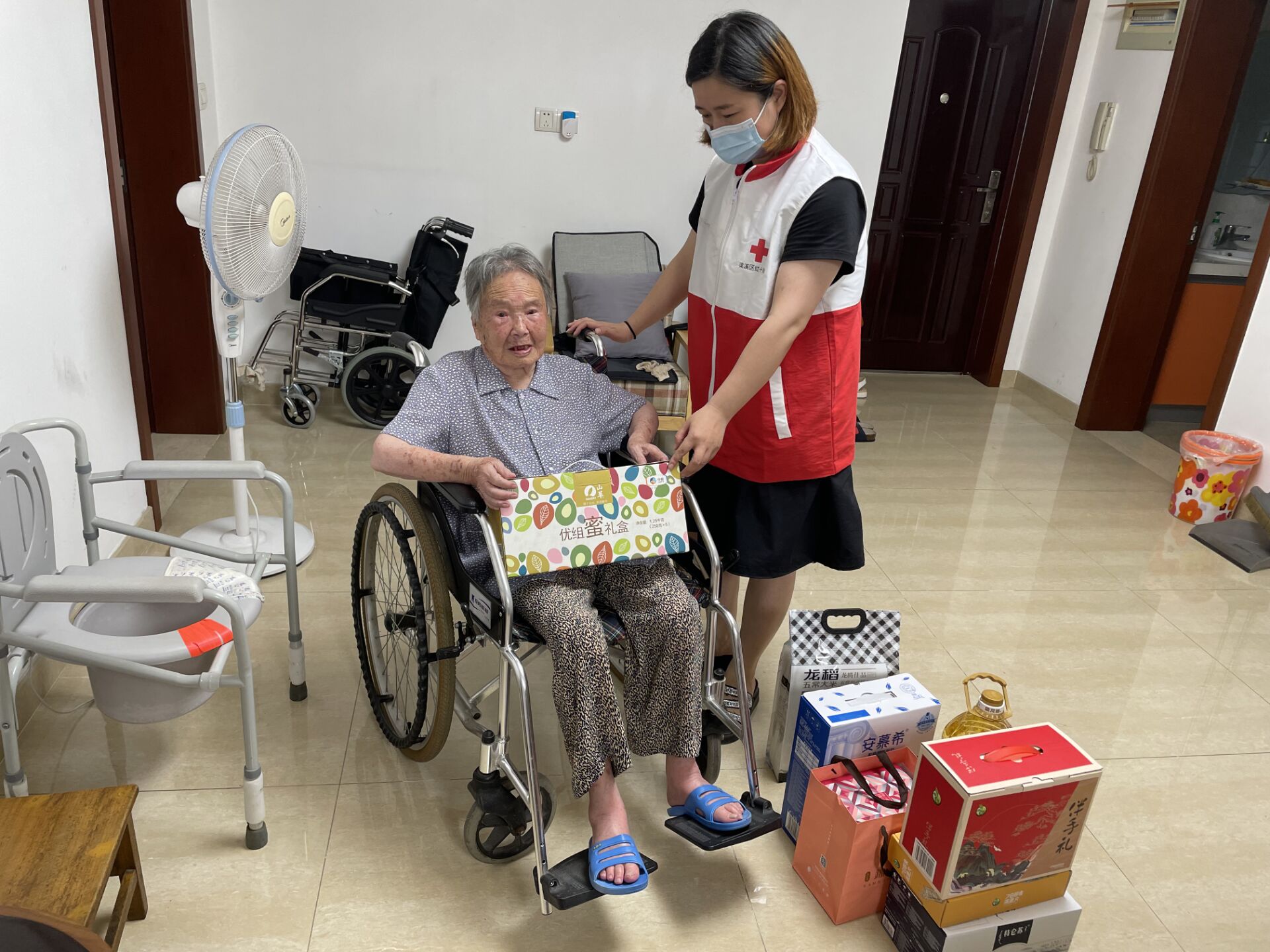 2022年8月2日下午,瞻江街道刘潭社区红十字会组织志愿者走进百岁老人家里,开展“走访百岁老人,高温慰问送清凉”活动。