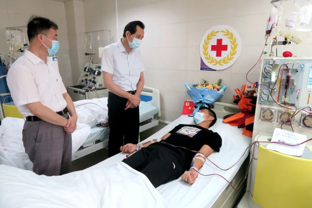 期间,苏州市红十字会会长蒋来清,苏州市红十字会党组书记、常务副会长刘文伟,张家港市红十字会常务副会长丁浩来到现场,为黄佳宏加油,叮嘱他保重身体,注意休息。平凡中见不凡,一次捐献,将两个本无联系的人紧紧联系在了一起,完成了生命的奇迹。