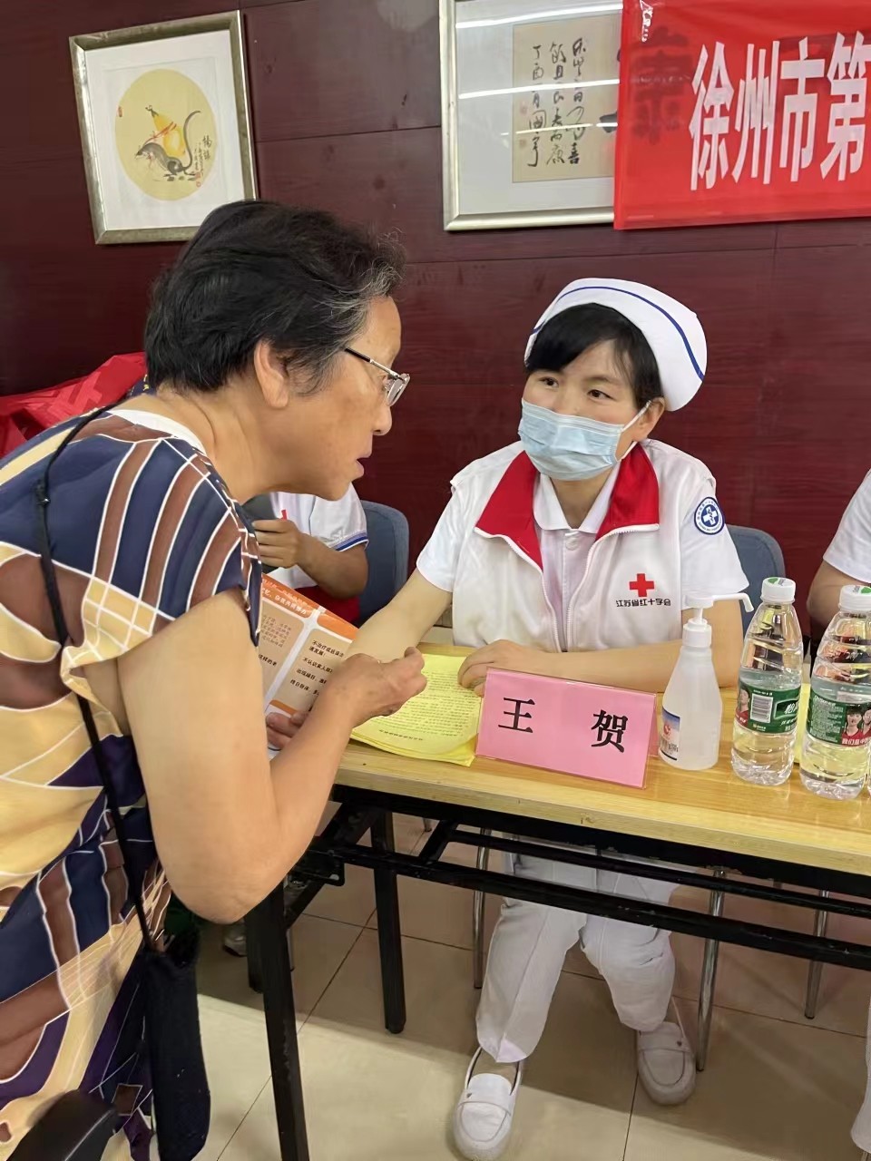 为深入贯彻落实省委省政府部署要求,助力“健康江苏”建设,传播红十字文化,服务基层群众,针对人口老龄化问题,以老年人营养健康为重点,树立现代老年健康理念,宣传普及老年健康政策和科学知识,切实提高老年人健康素养和健康水平。8月2日上午,徐州市第一人民医院合作发展处联合护理部在泉山区博济老年公寓(徐州博济康复医院)大厅组织开展“改善老年营养,促进老年健康”博爱送健康志愿活动。