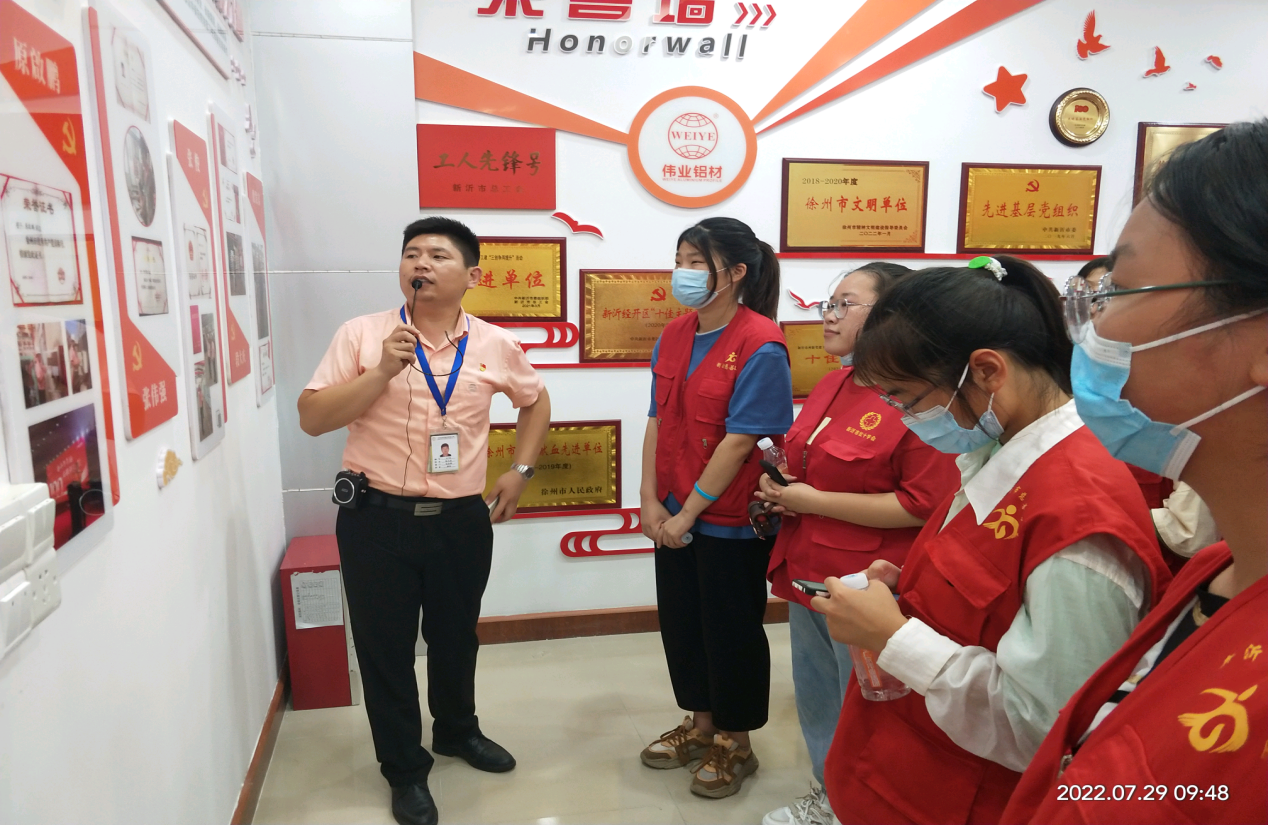 志愿者们现场参观了江苏利民化工有限公司和江苏伟业铝材有限公司党史学习教育基地。现场学习结束后,邀请了徐州市级党工建指导员王士伟为志愿者们上了一堂题为《从百年党的辉煌历史中汲取前进的力量》专题党课。