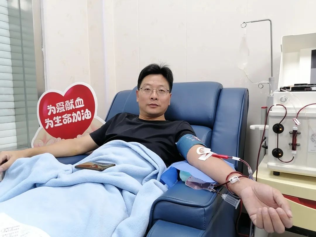 曾经服役深蓝五年的海军战士胡家平,与同事、曾经当过消防兵的谢立顺,相约来到机采屋捐献血小板。两人都是我市水利局中层干部,每年单位组织无偿献血活动,他们都积极报名参加,到今年上半年,两人都已经献血3200毫升。当从朋友那儿得知,容城有一支定期捐献血小板的红色暖流群后,便欣然加入捐献血小板队伍。“八一”建军节前,两人决定选择这个特别的日子来一次奉献行动:捐献血小板。经过严格检查,两人都符合捐献条件。据工作人员骆凌云介绍,句容开展无偿献血20多年了,机关干部献血的很多,但主动走进机采屋捐献血小板的仍是寥寥。为水利局机关干部胡家平、谢立顺点赞!