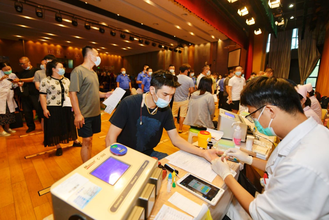 苏州的8月正是炎炎夏日、高温酷暑时,但广大献血志愿者们依然不惧炎热,早早来到活动现场参与无偿献血。早上八点,体检化验区已经排起了有序的队伍,来自机关、社区、企事业单位工作人员和社会各界热心群众积极响应,踊跃参加,携手为无偿献血公益事业贡献一份力量。在工作人员的引导下,献血志愿者们按相关规定登记信息、测量血压、化验血样,通过各项检查的志愿者来到采血处,依次贡献出自己的一份爱心。在献血志愿者队伍中,有鼓起勇气初上战场的“新手”,也有多次参与无偿献血的“老将”。“我从2002到现在,目前献血量已达5400CC了,基本每年都参加。”现场,来自街道综合行政执法局的一名献血“老将”查云华说道。除了查云华,现场还有很多“城管蓝”的身影,他们许多都是退役老兵,多年来,一直积极参与无偿献血。据了解,经过前期的广泛宣传动员,献血活动当天,共有49名城管队员积极参与,献血成功人员32人,献血量11000ml。
