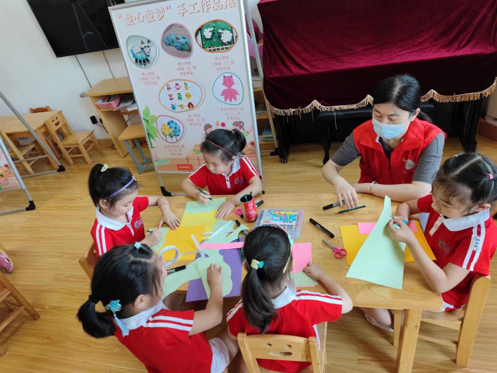 为激发辖区孩子们手工创作灵感和创作激情,给孩子们一个丰富多彩的暑期,8月9日,世伦桥社区团委、关工委、红十字会、新文明实践站志愿者走进新华侨世濠幼儿园,开展了“缤纷夏日,快乐手工”主题七彩夏日活动。