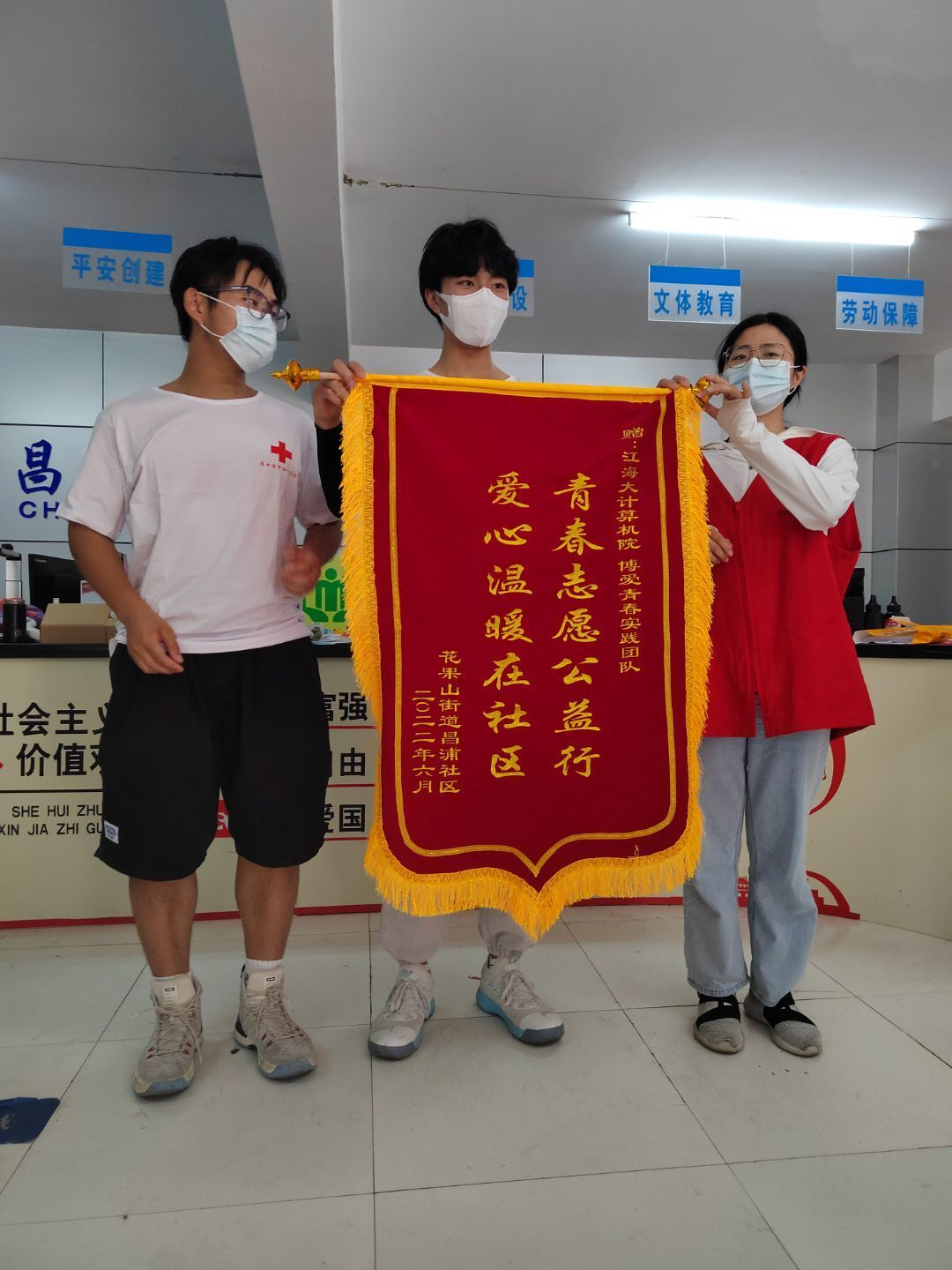 昌浦社区还制作了锦旗赠予了我们的志愿者团队,对大家的志愿服务和辛勤付出表示感谢。