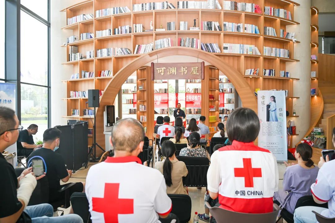 8月6日,宜兴市红十字会联合新街街道红十字会,在中国宜兴环保科技工业园管理委员会“可渊书屋”举办了“书香雅集 博爱赋能——宜小红公益阅读推广服务走进环科园”活动,来自铜峰社区红十字博爱家园的40余名学生、家长及志愿者参与活动,以书为友,共享书香。书香悠悠,童声朗朗。小小宜小红们自信大方,满腔热情,高声诵读,小小的身躯蕴藏着大大的能量,展现着朝气蓬勃、向阳生长的童真风采,吸引在场的每一个人在深情的诵读声中走进书香墨韵的诗词世界。