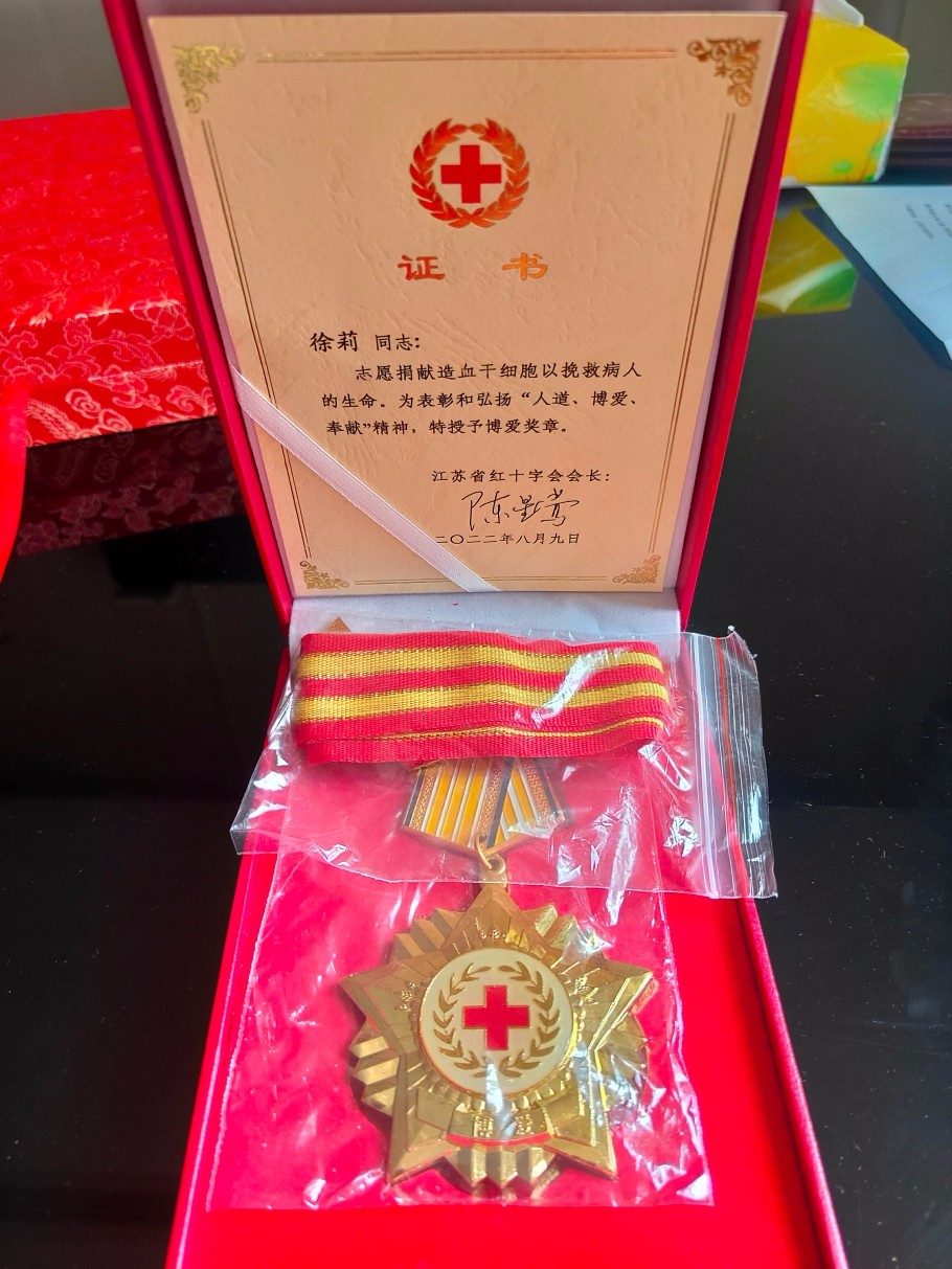 2020年5月,徐莉在一次无偿献血活动中,加入了中国造血干细胞捐献者资料库。今年3月28日,接中国造血干细胞捐献者资料库江苏分库通知,徐莉与一名16岁女性患者初配相合。经HLA高分辨配型完全相合,体检身体合格后,再接到江阴市红十字会工作人员捐献通知时,徐莉毫不犹豫地答应捐献造血干细胞。