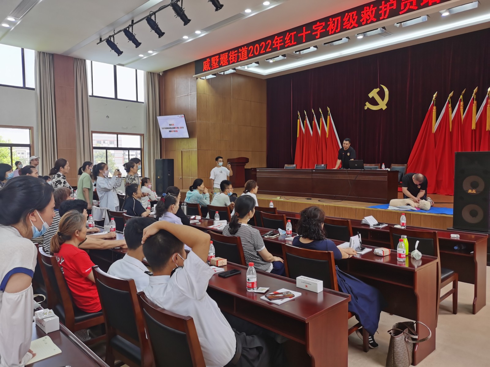 本次初级救护员培训活动由戚墅堰街道行政审批局举办,邀请到了常州市厚天救援队的专业人士来授课。授课内容包括理论讲授、心肺复苏和创伤急救等实操项目,“CPR+AED”心肺复苏课程为本次培训重点内容,辖区内40余人参加培训。