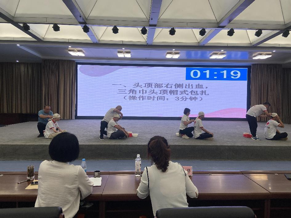 决赛当天,经过理论考试、救护演讲和救护技术等激烈角逐,区红会代表队最终脱颖而出,团体总分第二名,获得团体一等奖。