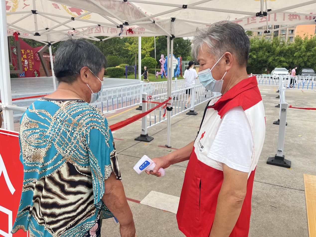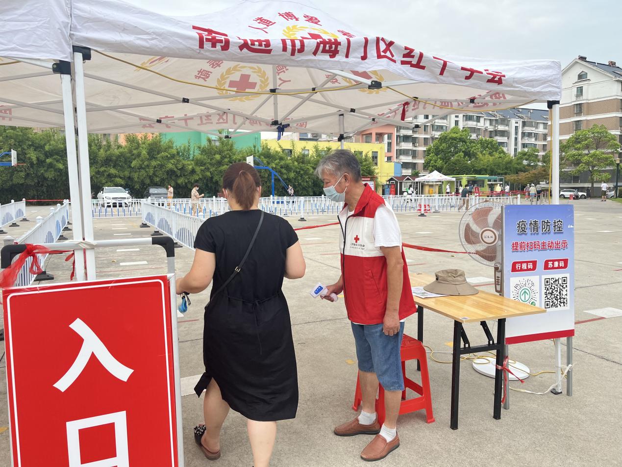 2022年8月15日和8月17日海门区开展了第二十三轮第一批次和第二批次区域核酸检测。海门街道光华社区博爱家园红十字志愿者黄生发助力社区核酸检测工作,做起了测温、查码、搭帐篷、维持秩序等工作。8月15日温度甚至高达40度,但是他依然坚持在岗,汗流浃背也不喊苦,他用“人道、博爱、奉献”的红十字精神筑牢防疫战线,为了大家的安全着想,为了社区的疫情防控工作,诠释了红十字志愿者的责任和担当,传递着奉献与坚守的力量!