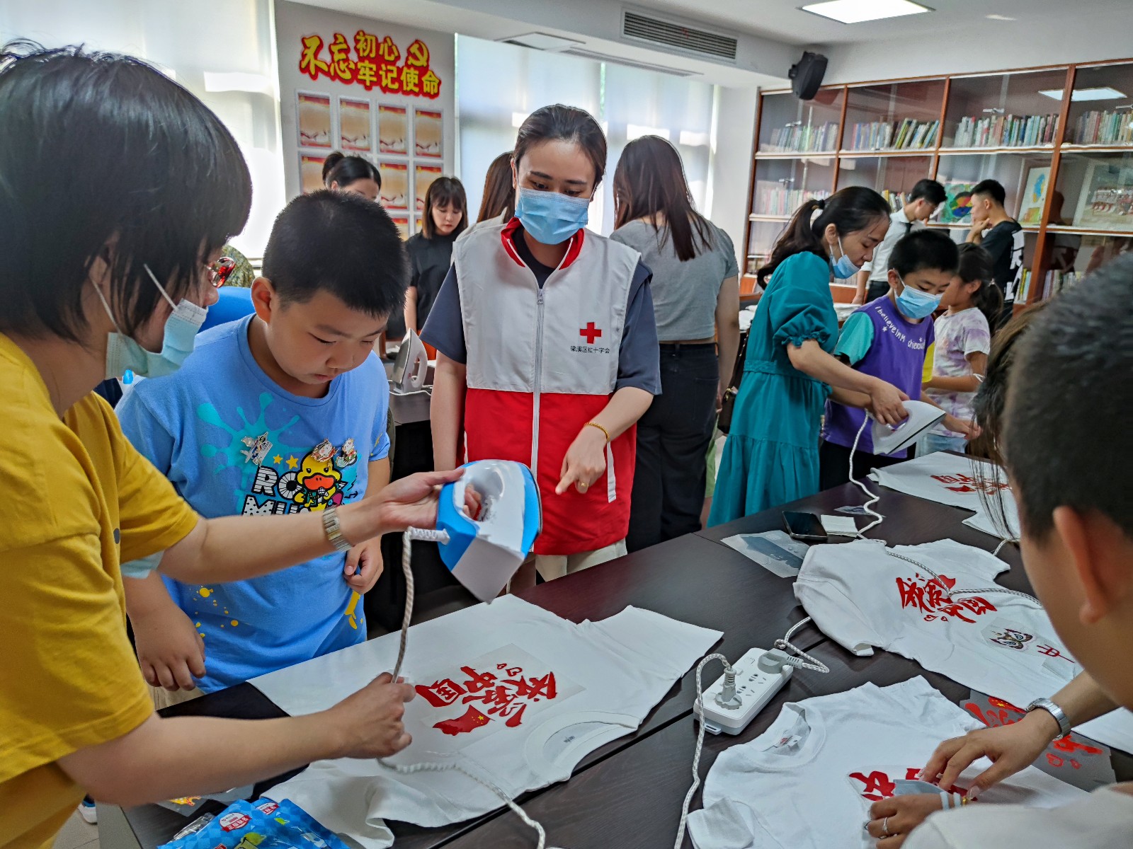 活动现场,通过观看微党课,以小题讲大道,以信史铭信仰,引导青少年传承红色基因,厚植爱国情怀。活动中,博爱家园的红十字志愿者耐心指导孩子们在T恤上烫制国旗图案和“我爱中国”等图片、文字,以此表达了孩子们的爱国之情。