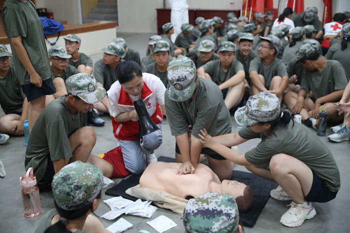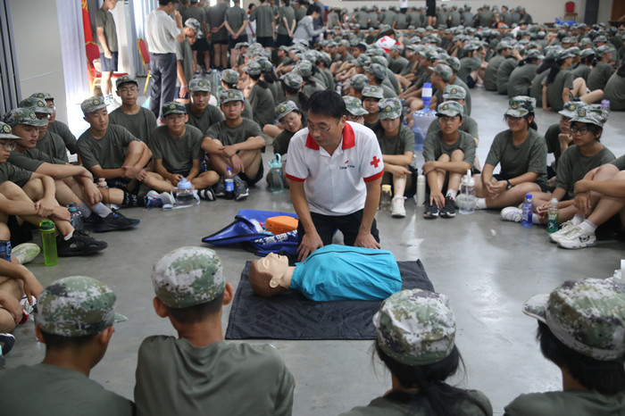 为普及应急救护知识,提高学生自救互救的意识与能力,有效应对校园突发情况,8月13日,溧水区红十字会组织20名救护老师,为区第三高级中学高一军训学生开展应急救护培训。