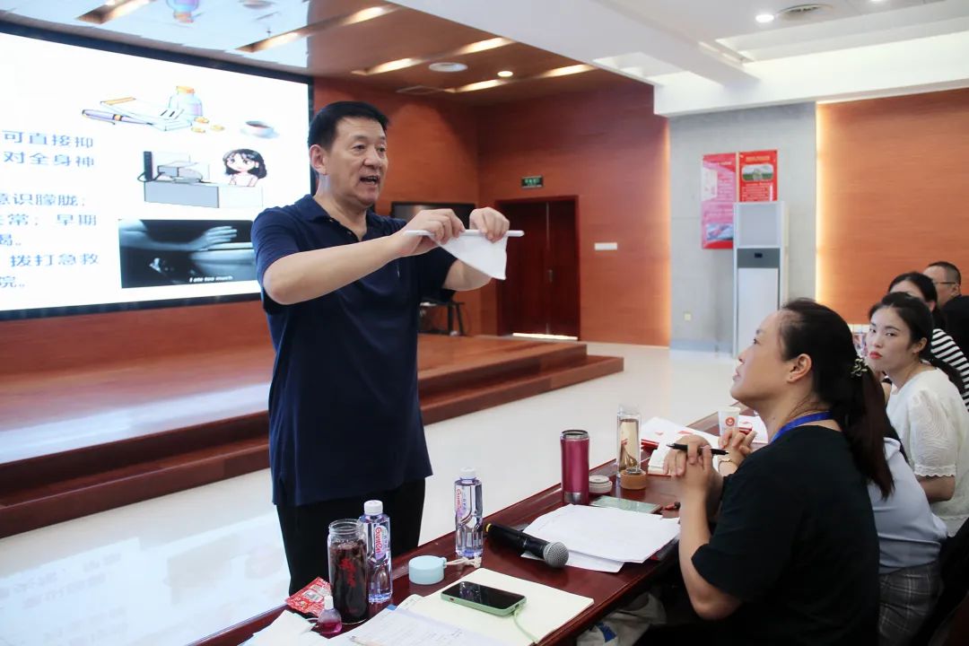 此次培训邀请到了南京大学医学院吴建中教授,南京医科大学附属医院逸夫医院急诊科邵旦兵主任,盐城市红十字会赈济救护部李志国主任等省级优秀红十字救护师资。