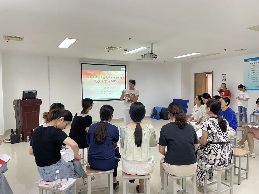 市人民医院的60名医务人员参加了此次培训,培训中专家教授讲解心肺复苏等急救知识,并与学员们积极互动,进行了规范性示范,让学员们开阔了视野、强化了理论知识和操作技能。最终60名学员考核全部合格,将取得省红十字会颁发的救护培训师资证书。