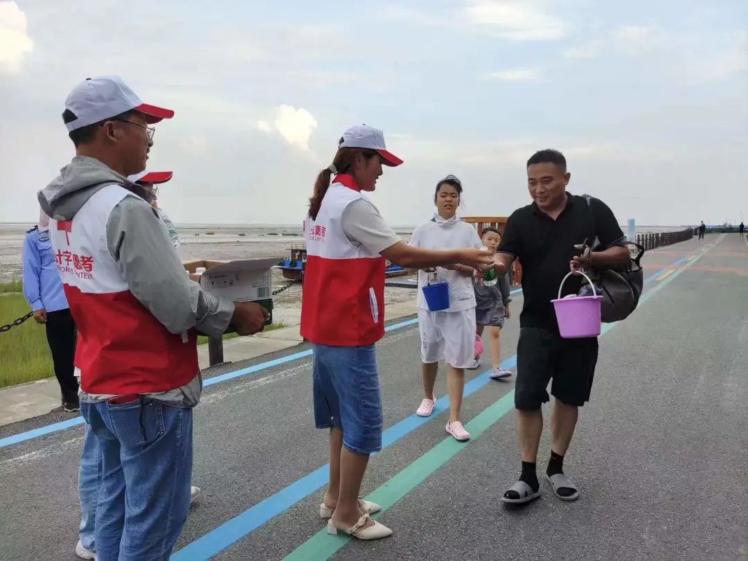 此次志愿活动期间,在游客较为集中的区域设置志愿服务点,引导游客有秩序进入、文明礼让出行,为游客耐心解答疑问、指引旅游线路、免费发放饮用水和风油精等更贴心的服务,使游客在条子泥景区享受到宾至如归的游览体验。