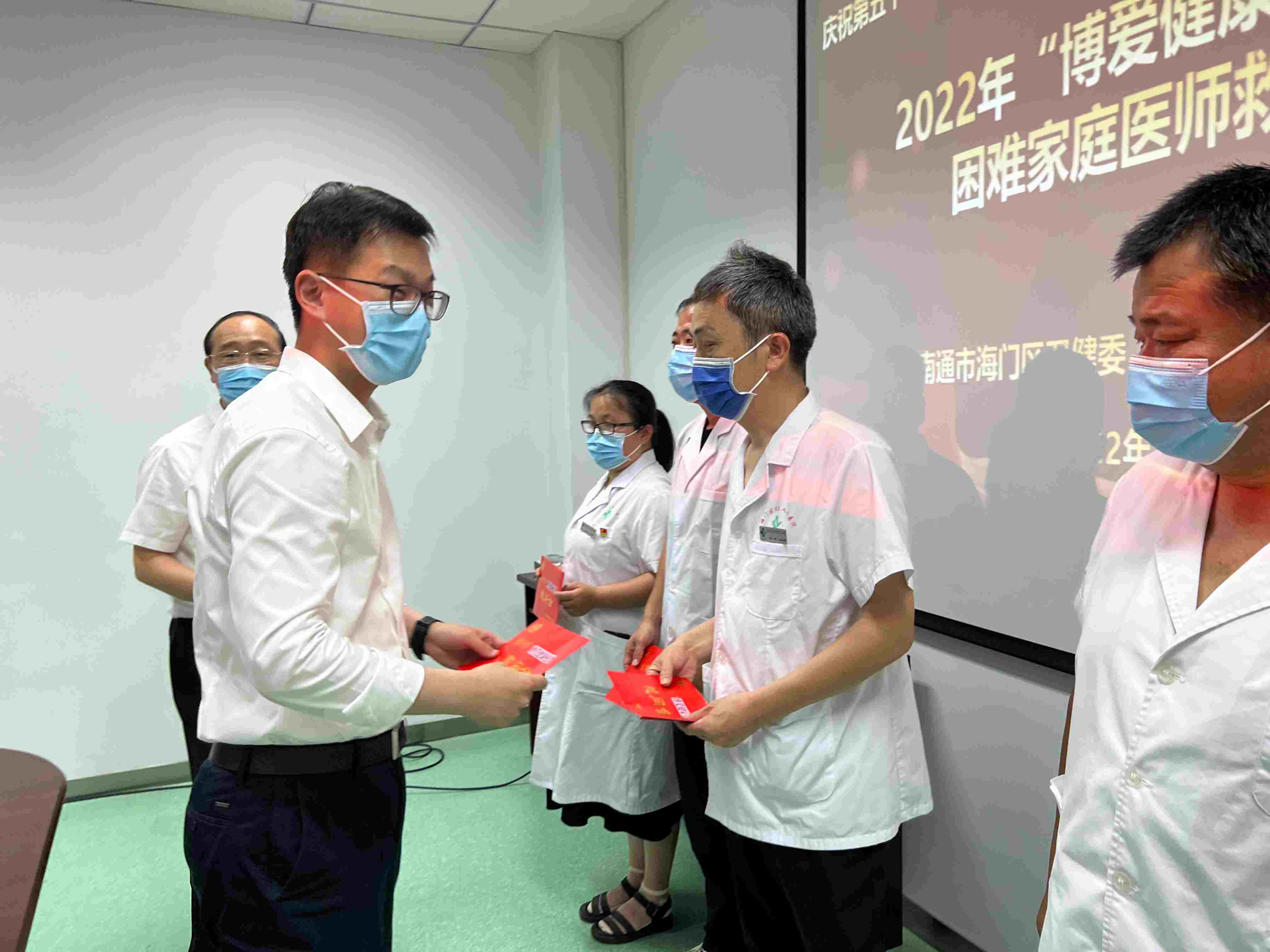 最后,施张范向在场的困难家庭医师代表送上了救助慰问金。