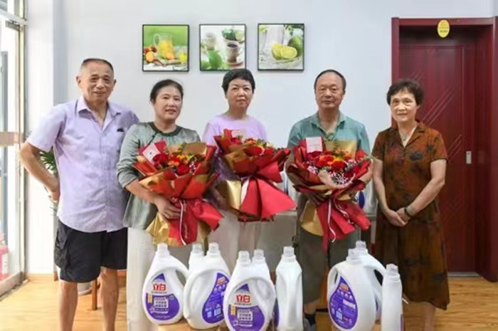 8月17日上午,溧水区癌友康复协会为15位癌友庆生,区红十字会副会长陈爱群、秘书长刘兰春也为癌友们送去了鲜花。