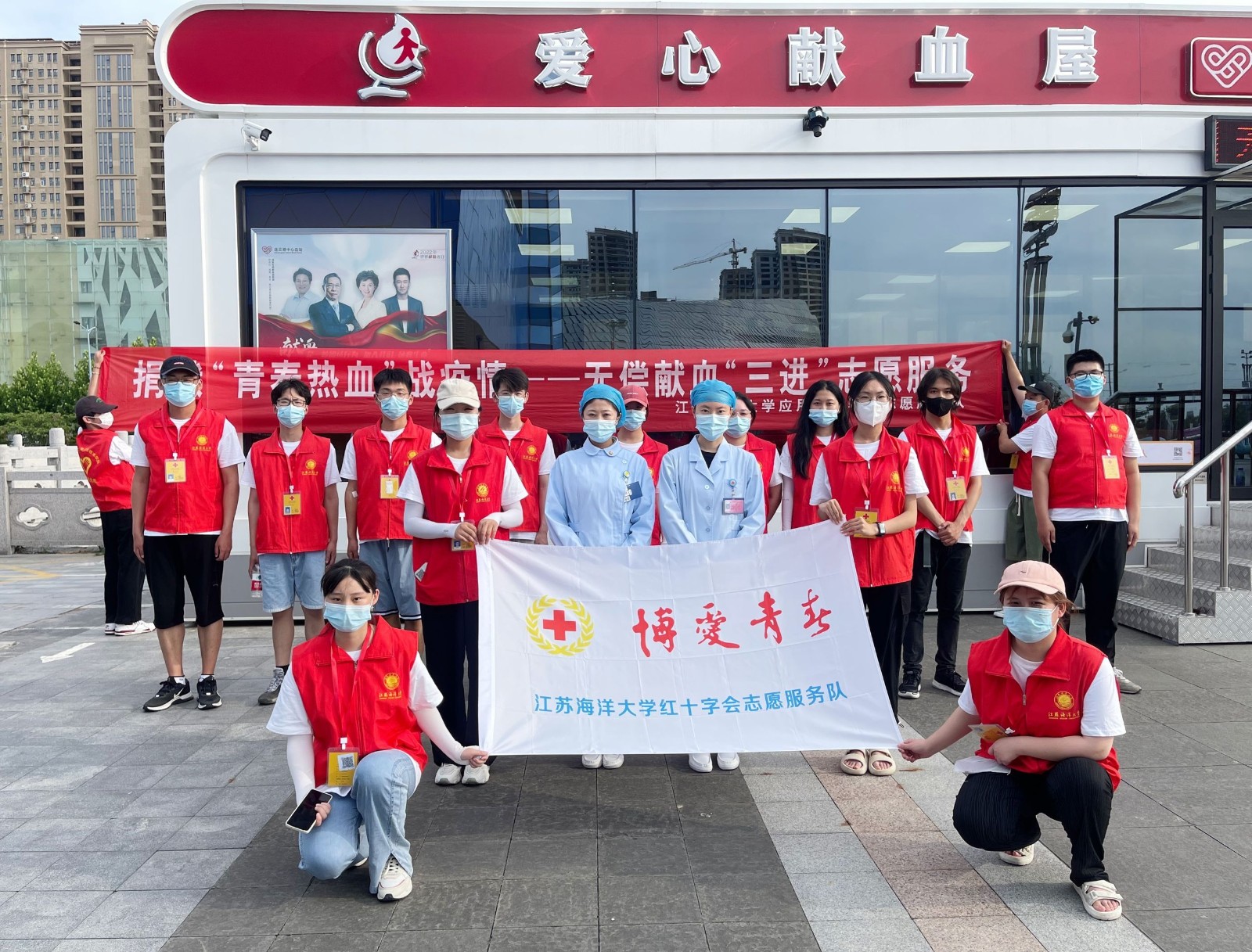 以青春热血书写互助篇章,用志愿服务构筑献血保障,志愿者们被汗水打湿的面庞,是这个初夏最美的模样。我院志愿服务队对万达、苏宁血车的志愿服务,不仅仅是代表江苏海洋大学对连云港市献血事业发展的心意,也是为了激起大家爱的意识和无私奉献的品质。希望通过这次活动能带动社会,唤醒更多的爱心。因为大家的献血是托起他人生命的希望,生命因大家而延续。看到中国献血事业的蒸蒸日上,大家的心里也格外幸福!