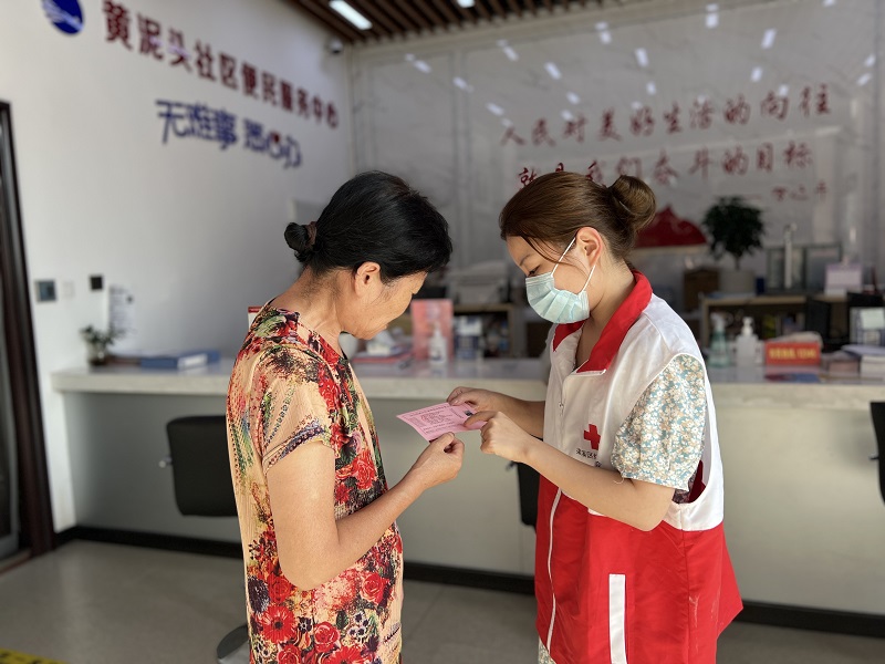 街道红十字工作人员将提前准备好的绿豆、驱蚊器等夏季防暑用品送到困难家庭,在倾听需求的同时,嘱咐他们在高温天气下注意防暑降温,平安度过酷暑时期,有困难随时和社区联系。