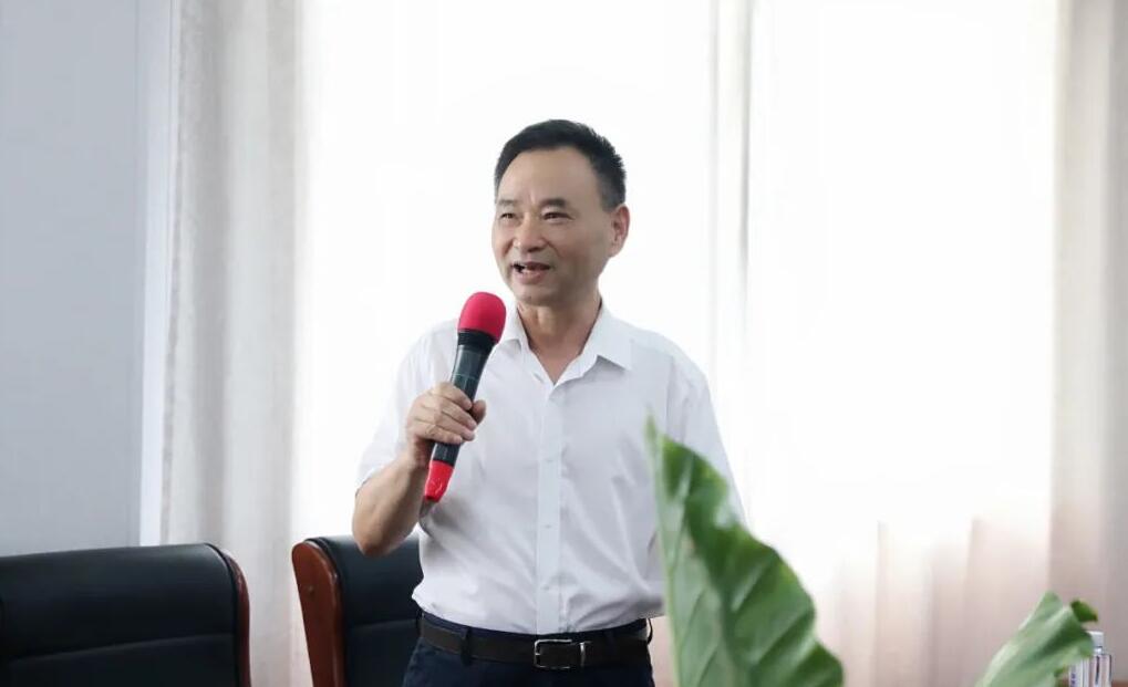 县企业家协会常务副理事长、江苏海力风电设备科技股份有限公司董事长许世俊介绍如东县企业家协会“金牛致远”红十字博爱项目助学情况。
