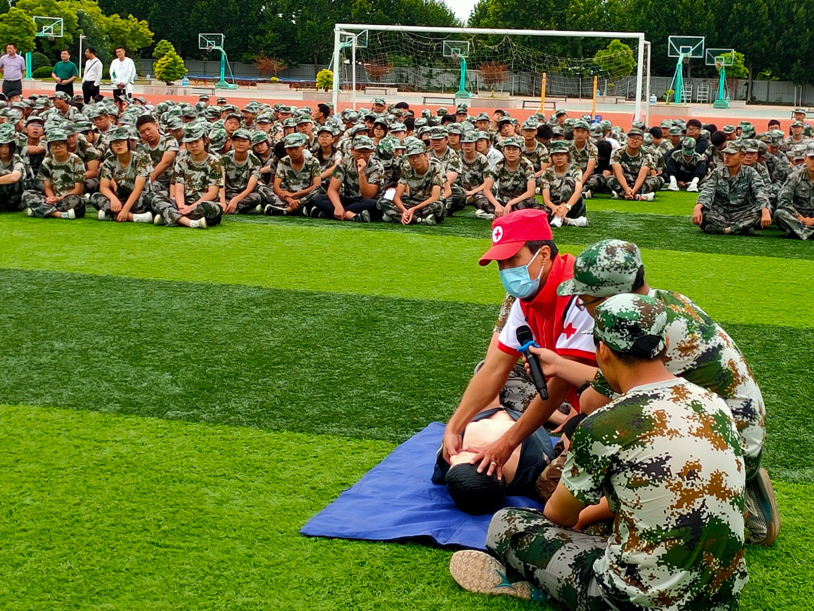 近期,宿城区红十字会联合各学校,将应急救护培训融入校园军训课程。