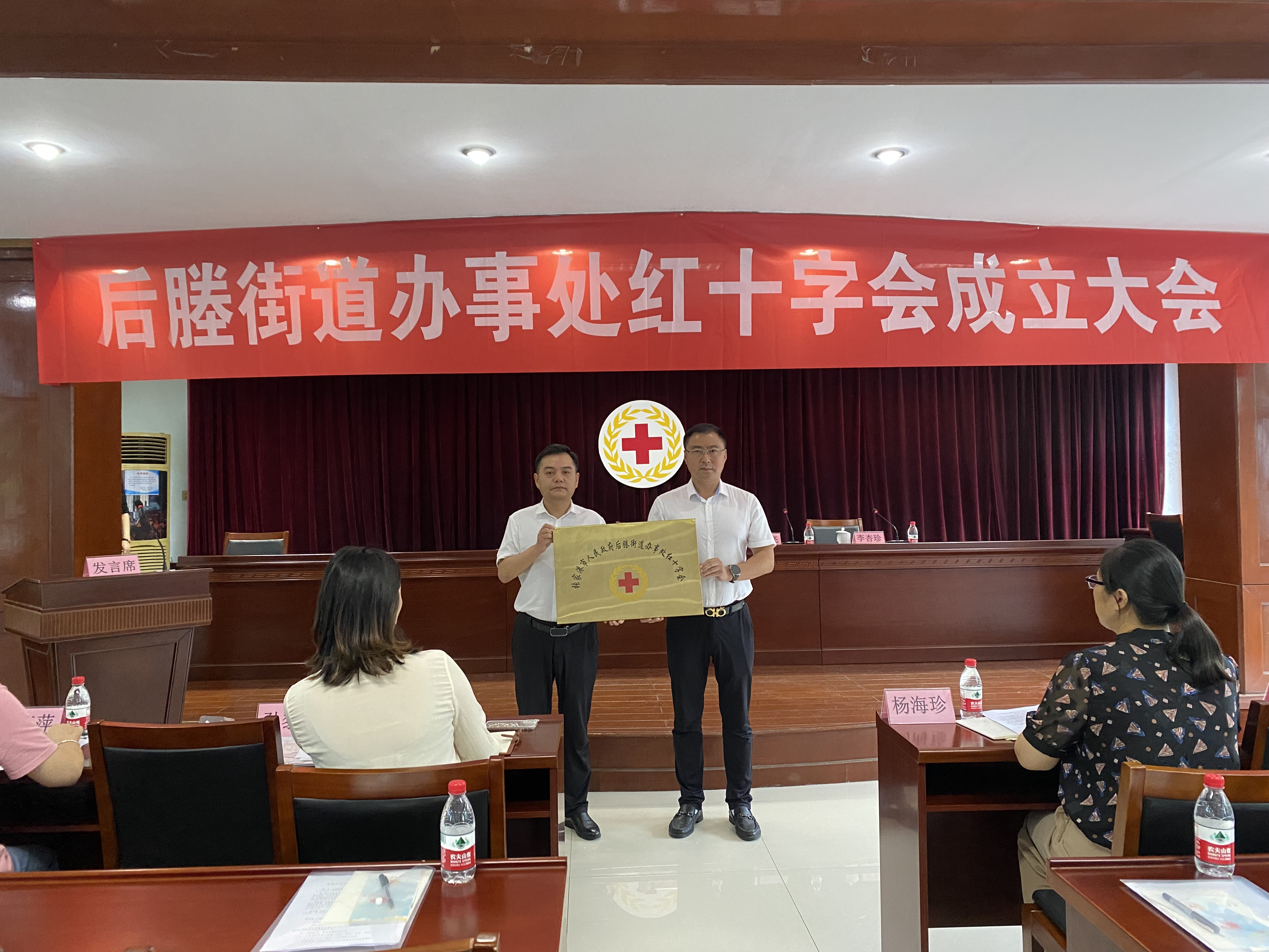 8月26日下午,张家港市后塍街道召开红十字会成立大会暨第一次会员代表大会,市红十字会常务副会长丁浩、后塍街道党工委副书记、办事处主任孙亮,市红十字会秘书长黄莺、后塍街道办事处副主任李杏珍出席会议。