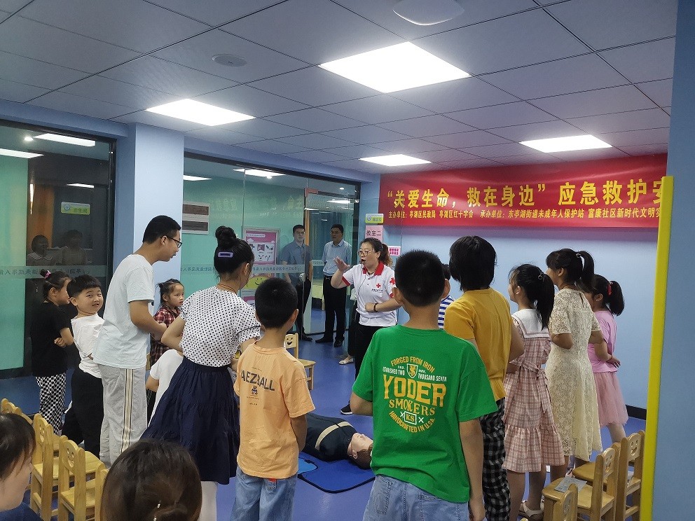 为进一步普及应急救护常识,提高儿童、青少年基本救护意识和能力,8月27日上午,亭湖区民政局、亭湖区红十字会联合东亭湖街道未成年人保护站、富康社区新时代文明实践站组织应急救护安全教育活动。