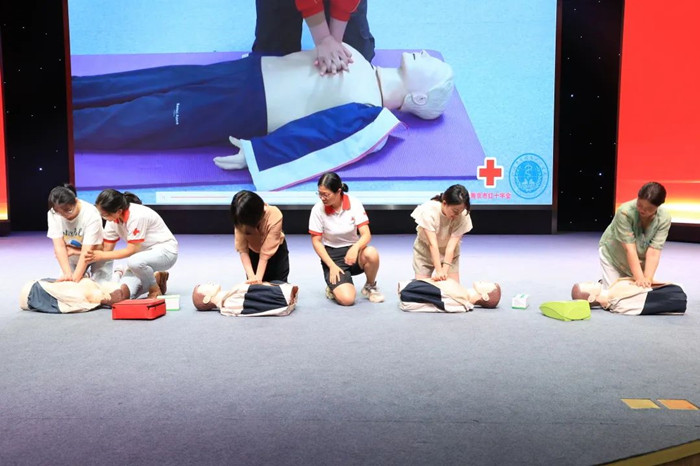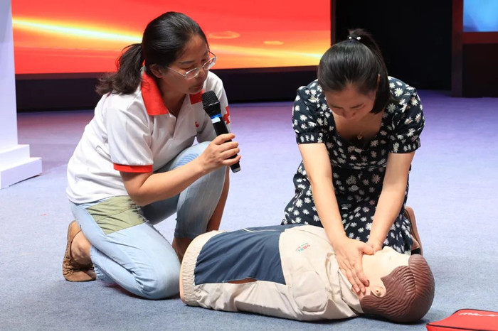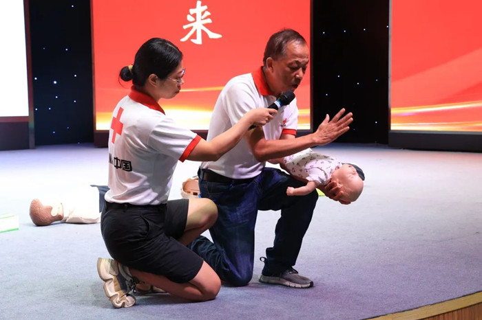 活动中,市红十字会急救导师史美兰通过“理论授课+实操模拟+实操考核”的教学方式,向与会员工细致讲解了心肺复苏、自动体外除颤器使用、气道异物梗阻急救三项救护理论知识。随后,现场模拟多种突发情况,邀请员工实战化操作了胸外按压、气道异物梗阻等急救内容,并予以现场指导,确保大家全面掌握各项急救操作。与会员工纷纷表示,这次活动非常有意义,进一步增强了大家的安全意识,提高了自救互救的水平和能力。