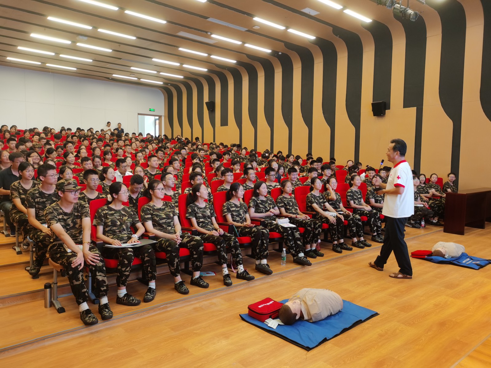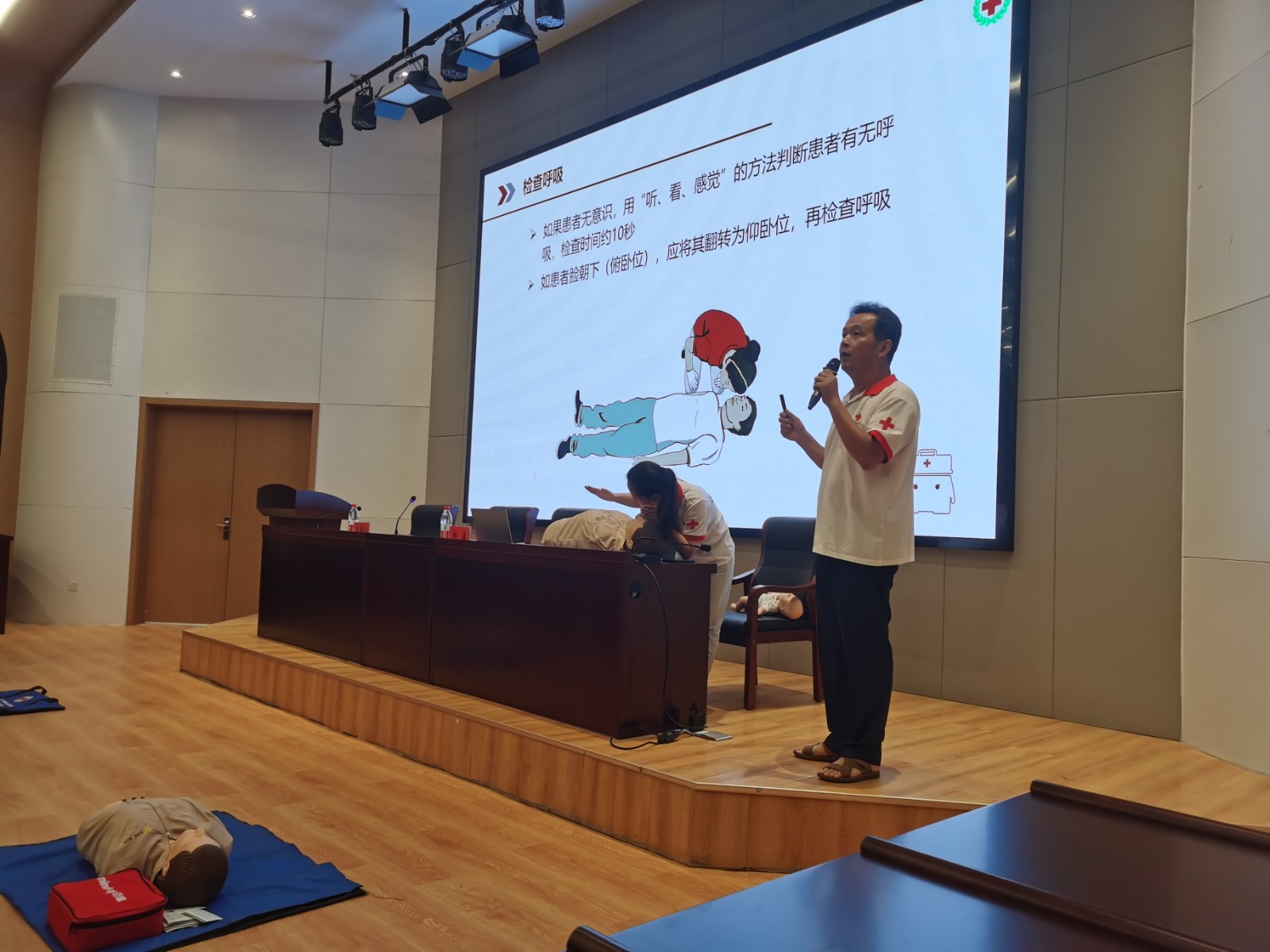培训现场,杨森采取理论讲解、示范操作、师生互动、现场演示等多种形式,教授了心肺复苏术、AED除颤仪的使用、气道异物梗阻急救术等急救技能。此次培训内容丰富,讲解深入浅出,通俗易懂,收到了良好的效果,深受广大师生欢迎。