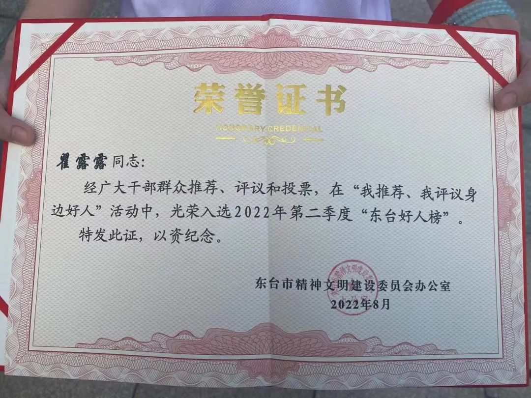[盐城市]东台红十字志愿者瞿露露获2022年二季度“东台好人”
