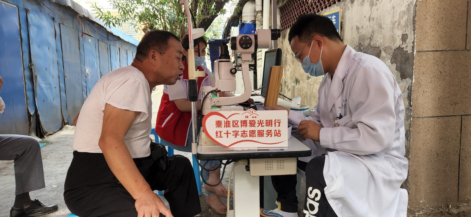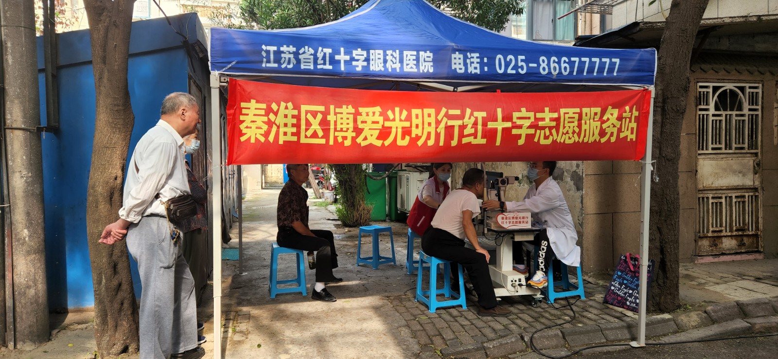 9月1日上午,秦淮区马府街社区红十字志愿服务站在马府街社区九莲塘小区开展了白内障眼病义诊活动。