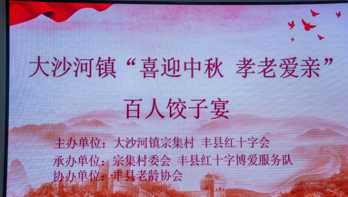秋高气爽,风景正好,一年一度的“中秋节”即将来临。为进一步弘扬中华民族孝亲敬老的传统美德,倡导乡风文明理念,营造关爱老人、共建和谐社会的良好氛围,2022年9月1日,丰县红十字会在大沙河镇宗集村,为村里70岁以上老人举办“喜迎中秋 孝老爱亲”饺子宴,丰县老龄委、丰县书法协会和丰县红十字博爱志愿服务队参加了活动。