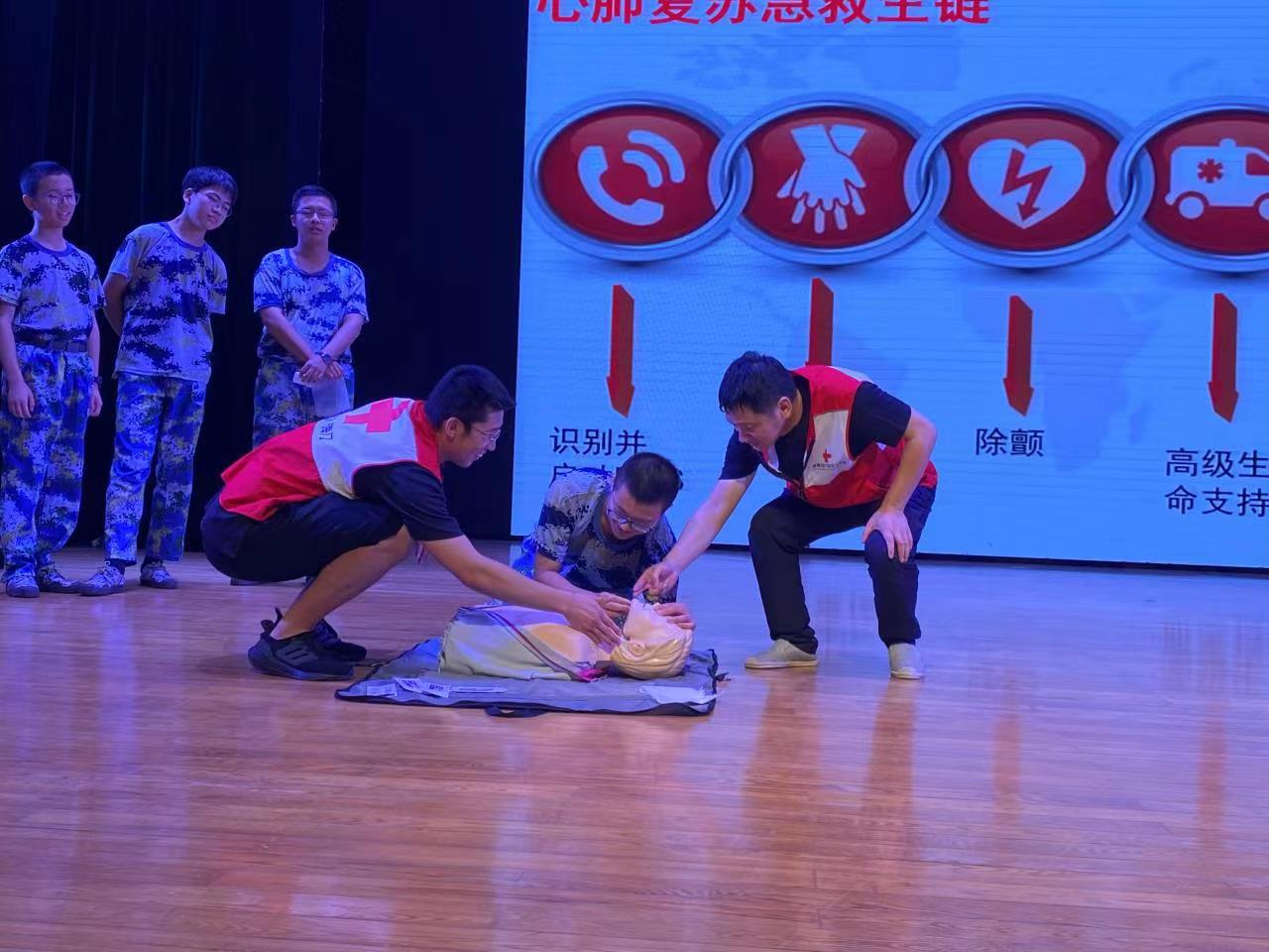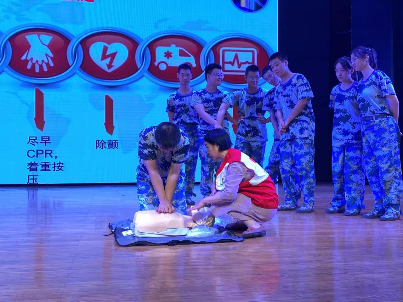 正式入读高中之前,高一新生还要经历重要的“军训”一课。为进一步普及急救知识和技能,增强学校师生安全防护意识和自救互救能力,区红十字会来到江苏省海门中学,为845名正在进行军训的高一新生开展应急救护知识普及培训。