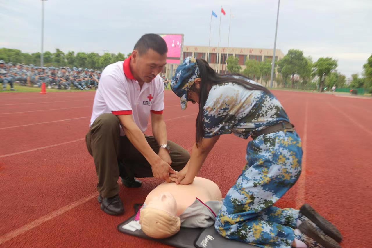 为有效预防和应对学生军训中的急救问题和其他各种风险,普及应急救护知识,确保军训工作圆满顺利完成,区红十字会来到海门中专,为高一新生们开展了一期应急救护知识普及培训。
