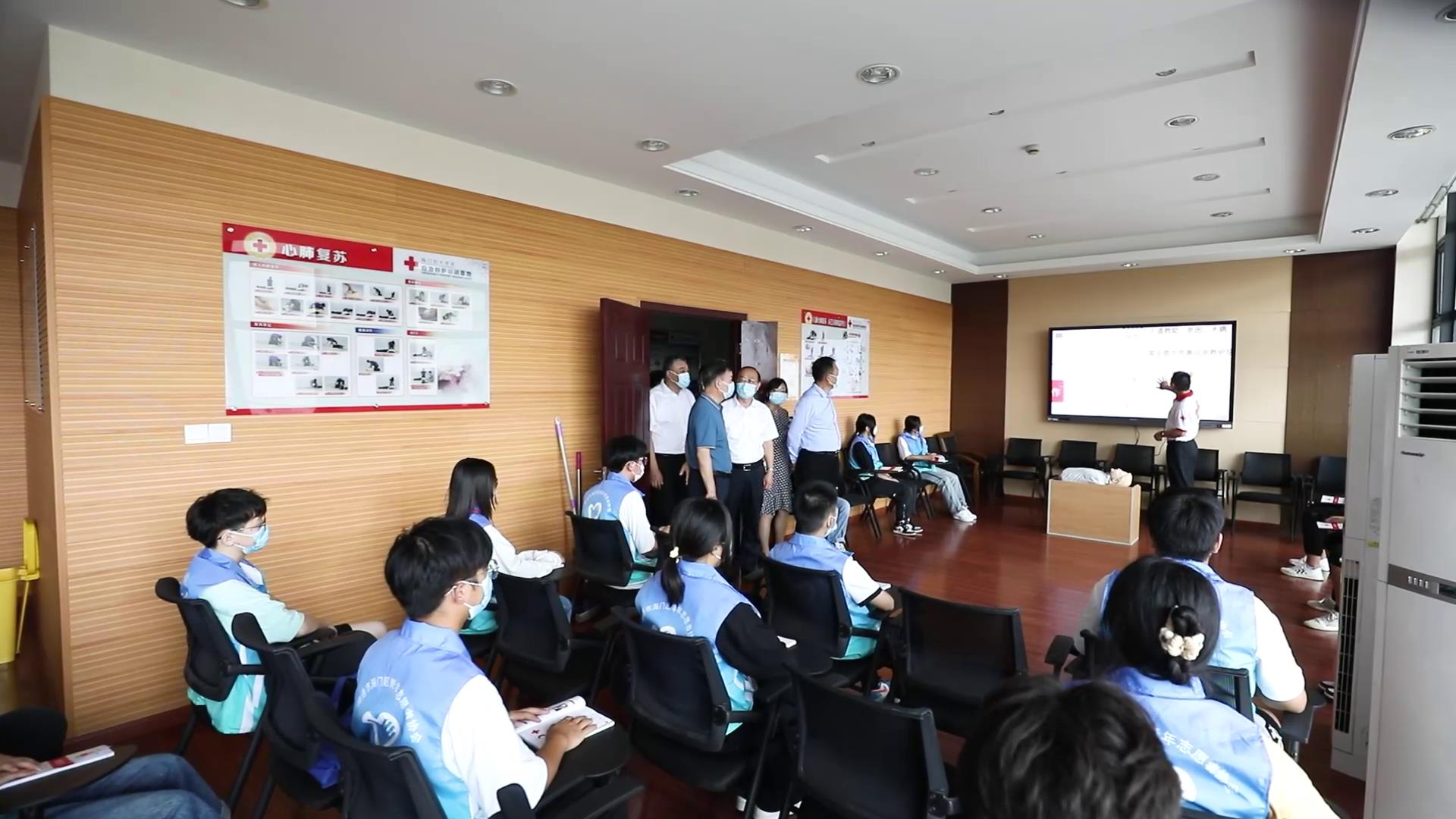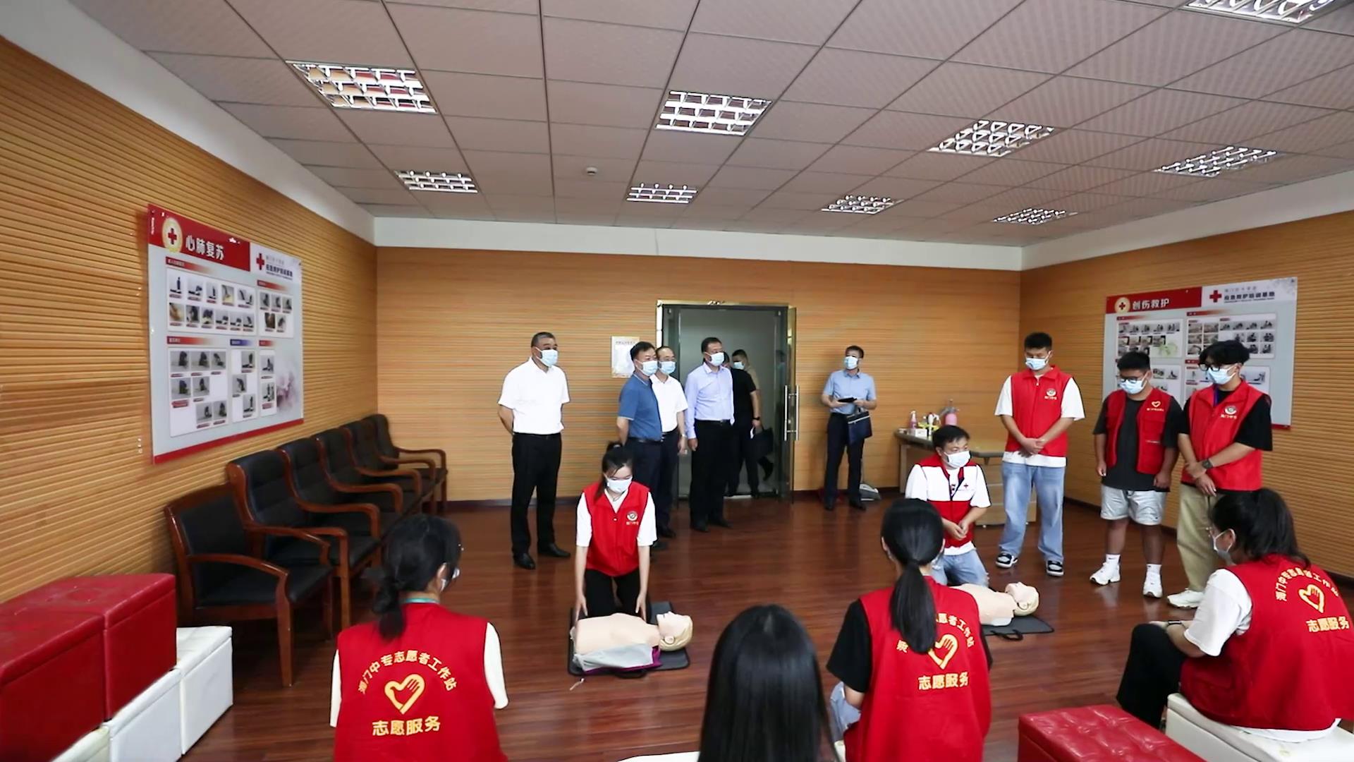 王旭明一行通过实地查看红十字应急救护培训基地建设情况、观看基地建设视频,与基地相关负责人进行交流,对应急救护培训示范基地建设情况进行实地复核评估。